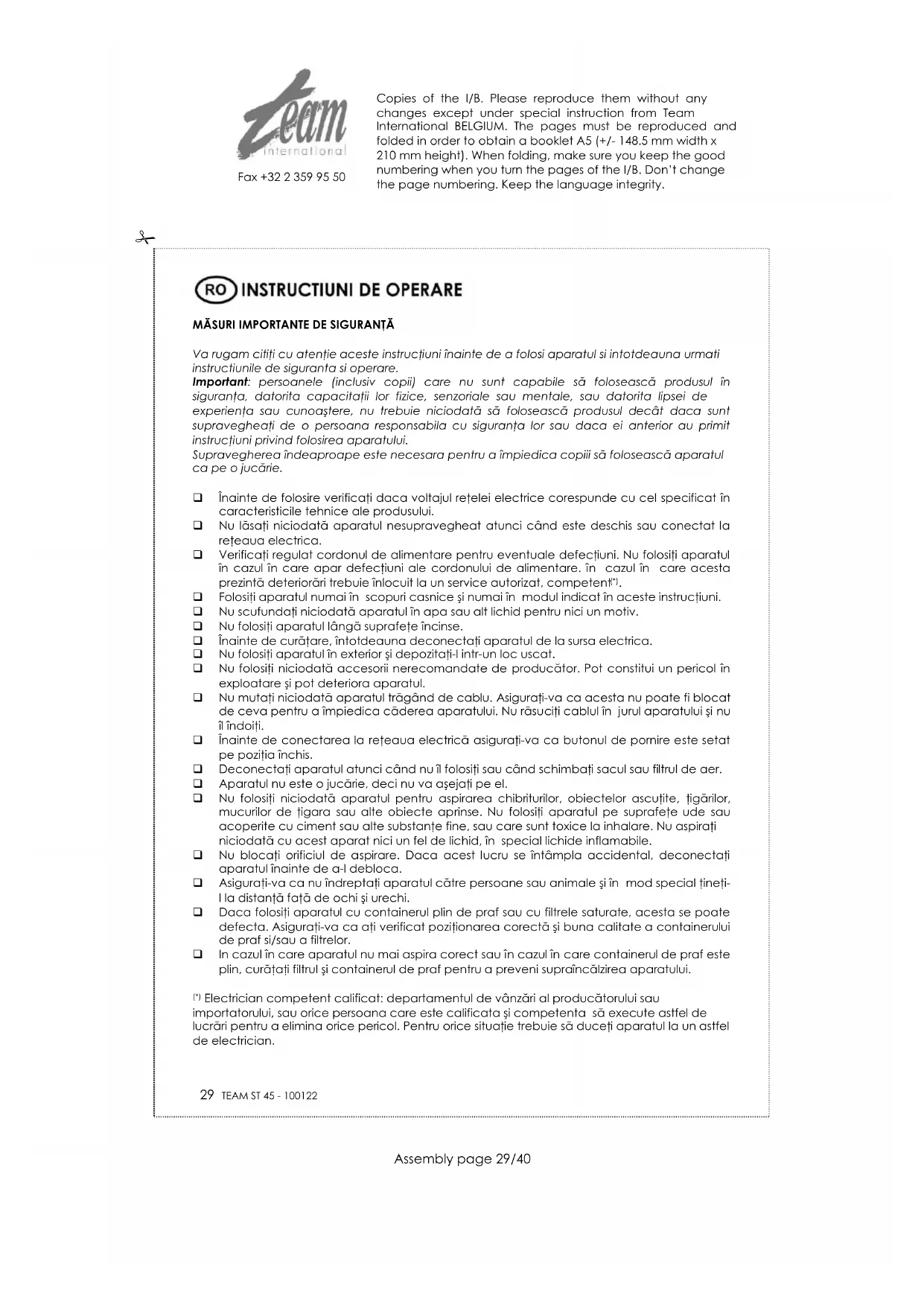 ST 45 - Aspirator TEAM - Manual de utilizare gratuit