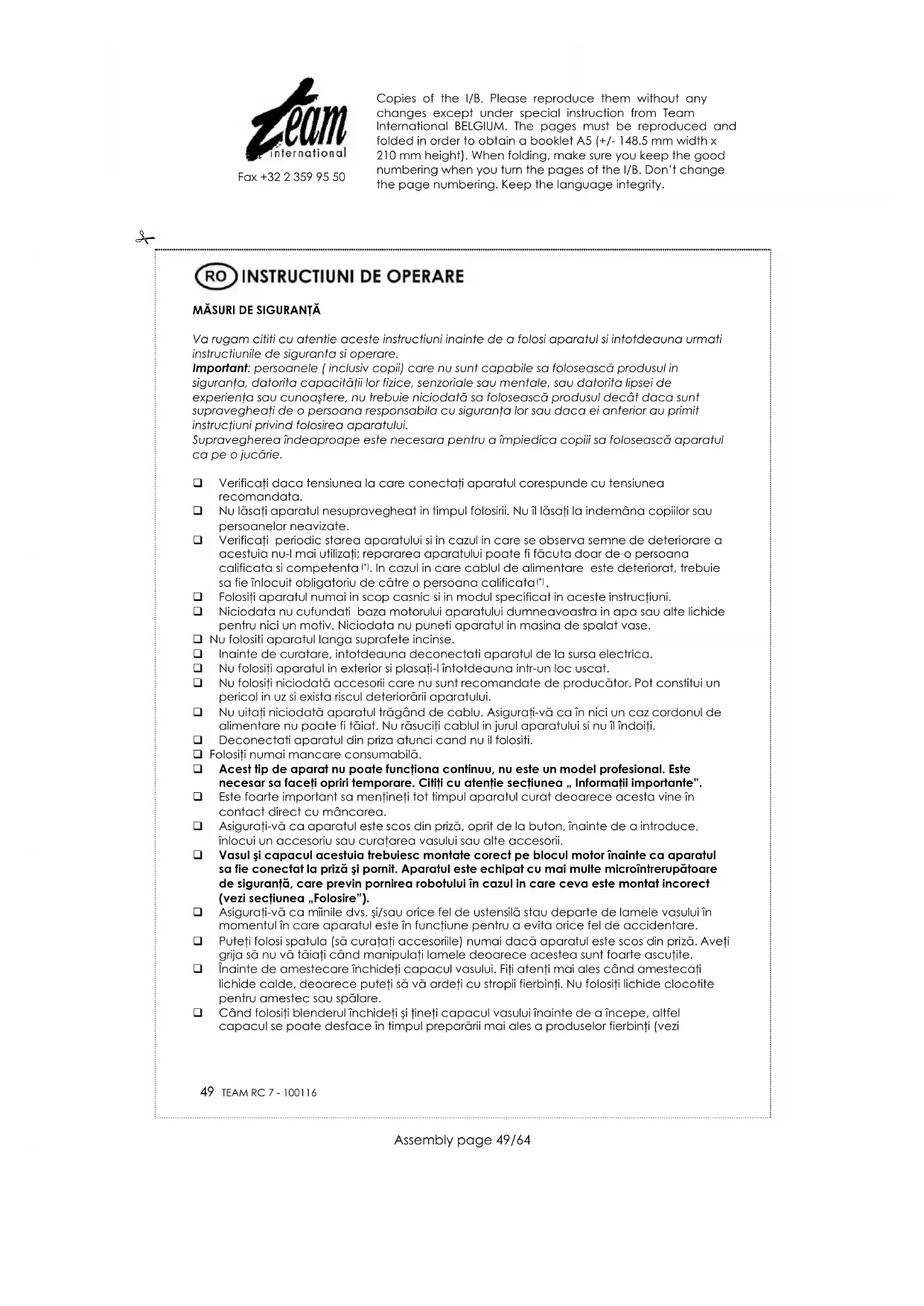 RC 7 - Robot de bucătărie TEAM - Manual de utilizare gratuit