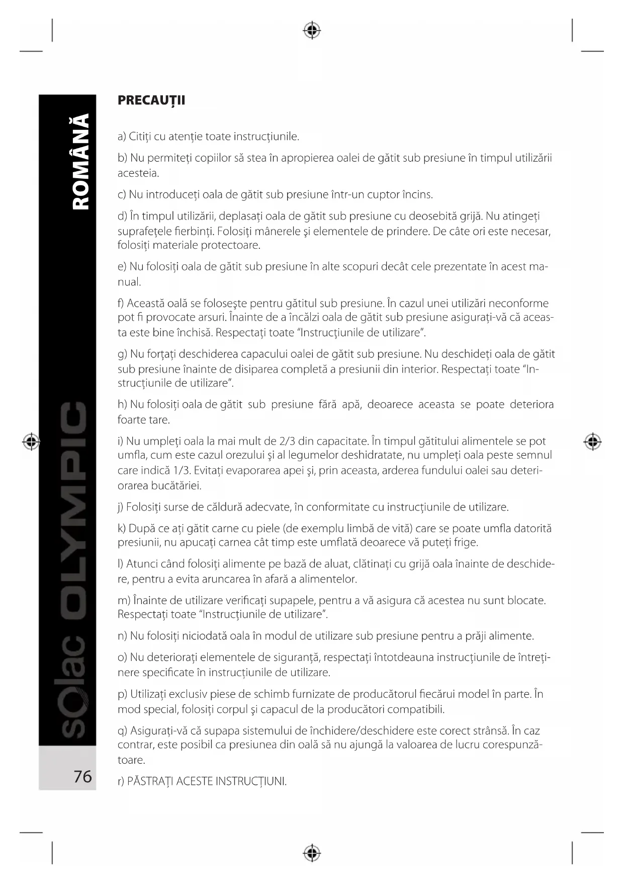 e) Nu folosiţi oala de gătit sub presiune în alte scopuri pentru cele prezentate în acest manual.