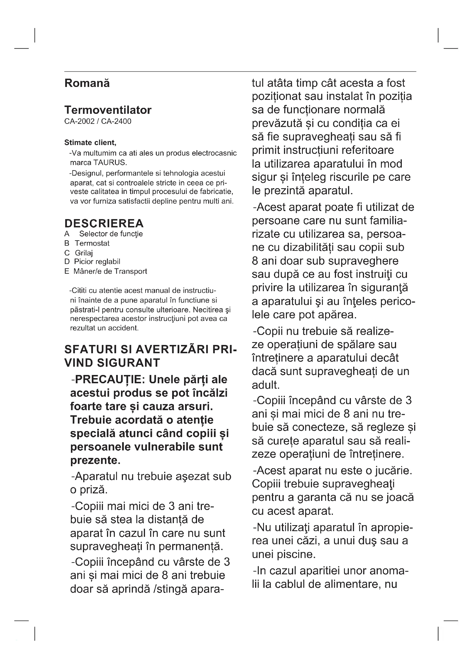 CA2002 - Încălzire TAURUS - Manual de utilizare gratuit