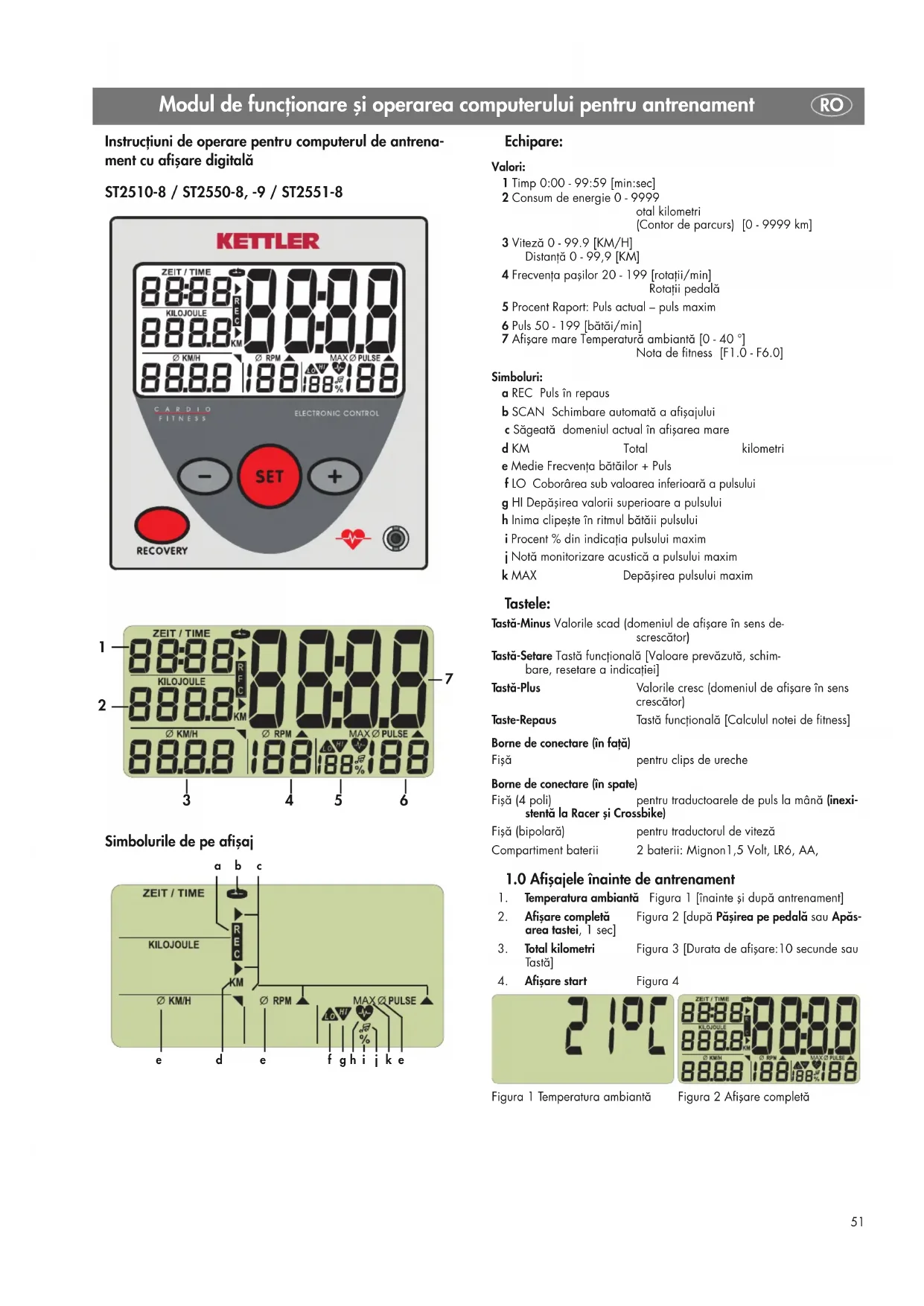 Figura 1 Temperatura ambiantă Figura 2 Afişare completă Instrucţiuni de operare pentru computerul de antrena- ment cu afişare digitală ST2510-8 / ST2550-8, -9 / ST2551-8 Simbolurile de pe afişaj
