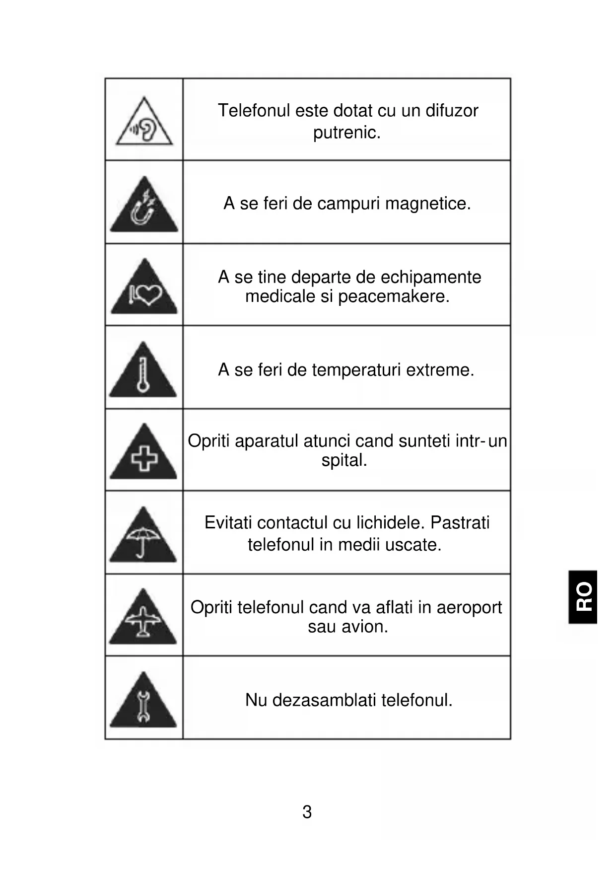 Nu dezasamblati telefonul. 3Opriti telefonul cand va aflati in apropierea unor materiale sau lichide explozibile.