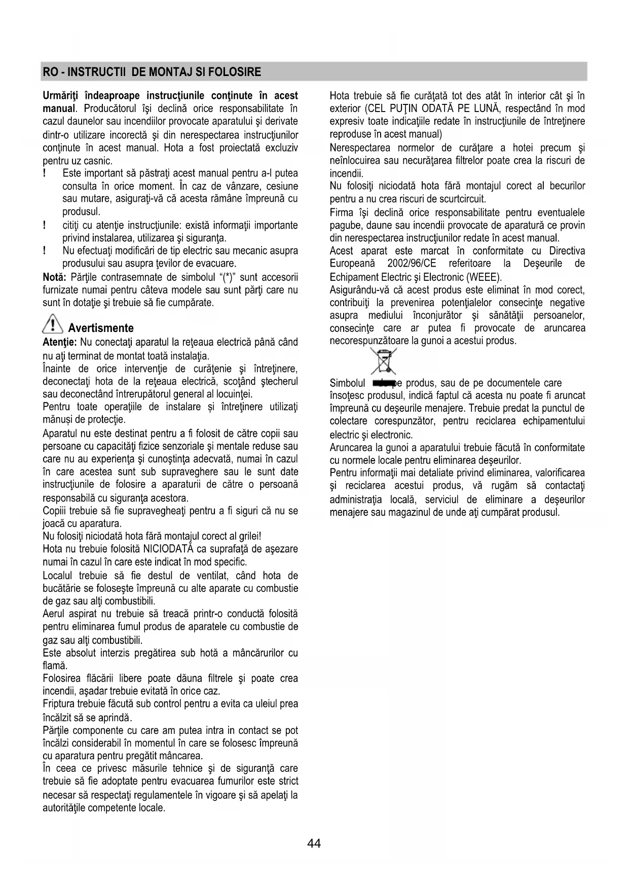 Tivoli - Hotă de bucătărie TURBOAIR - Manual de utilizare gratuit