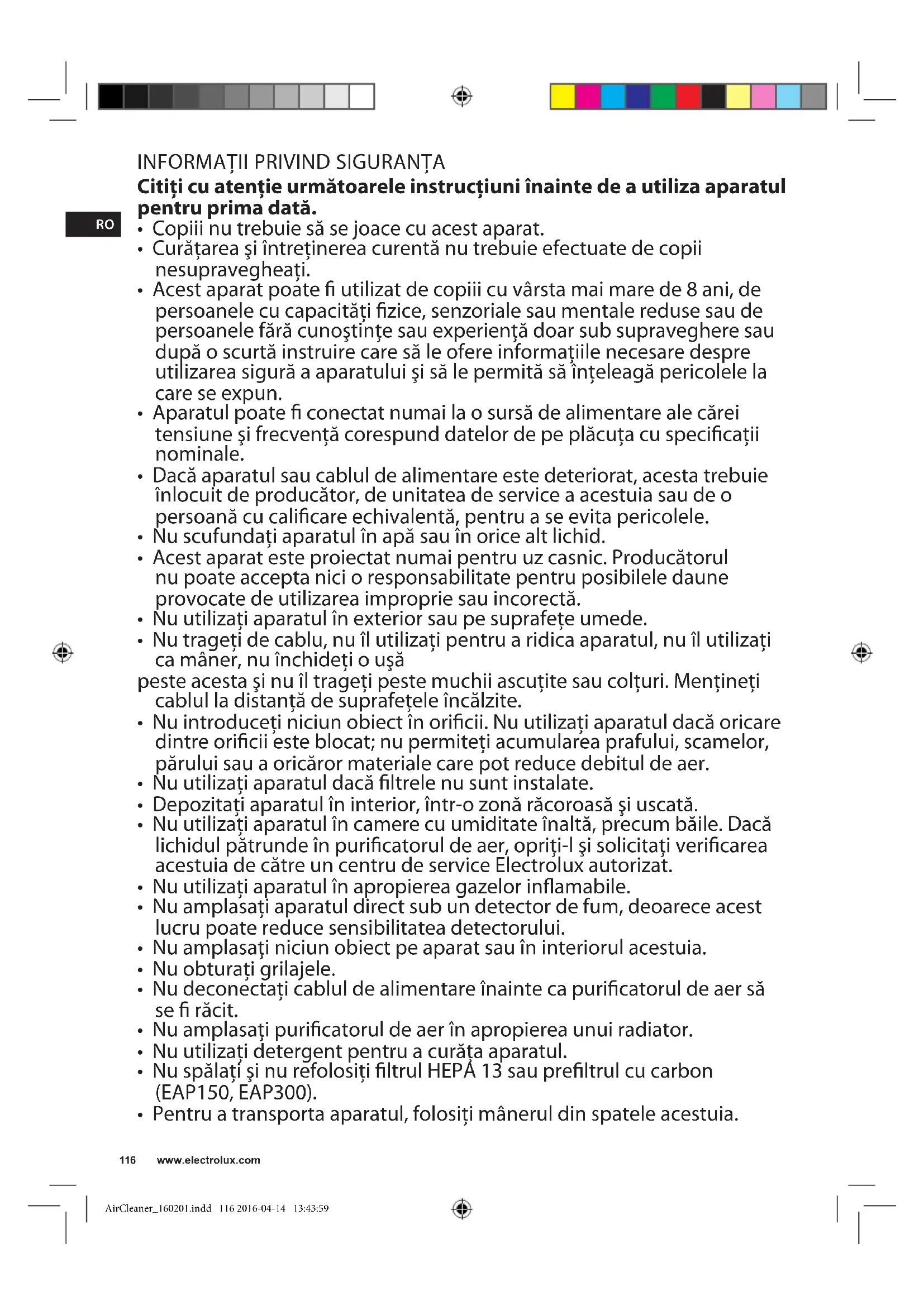 MANUAL DE UTILIZARE EAP300 ELECTROLUX