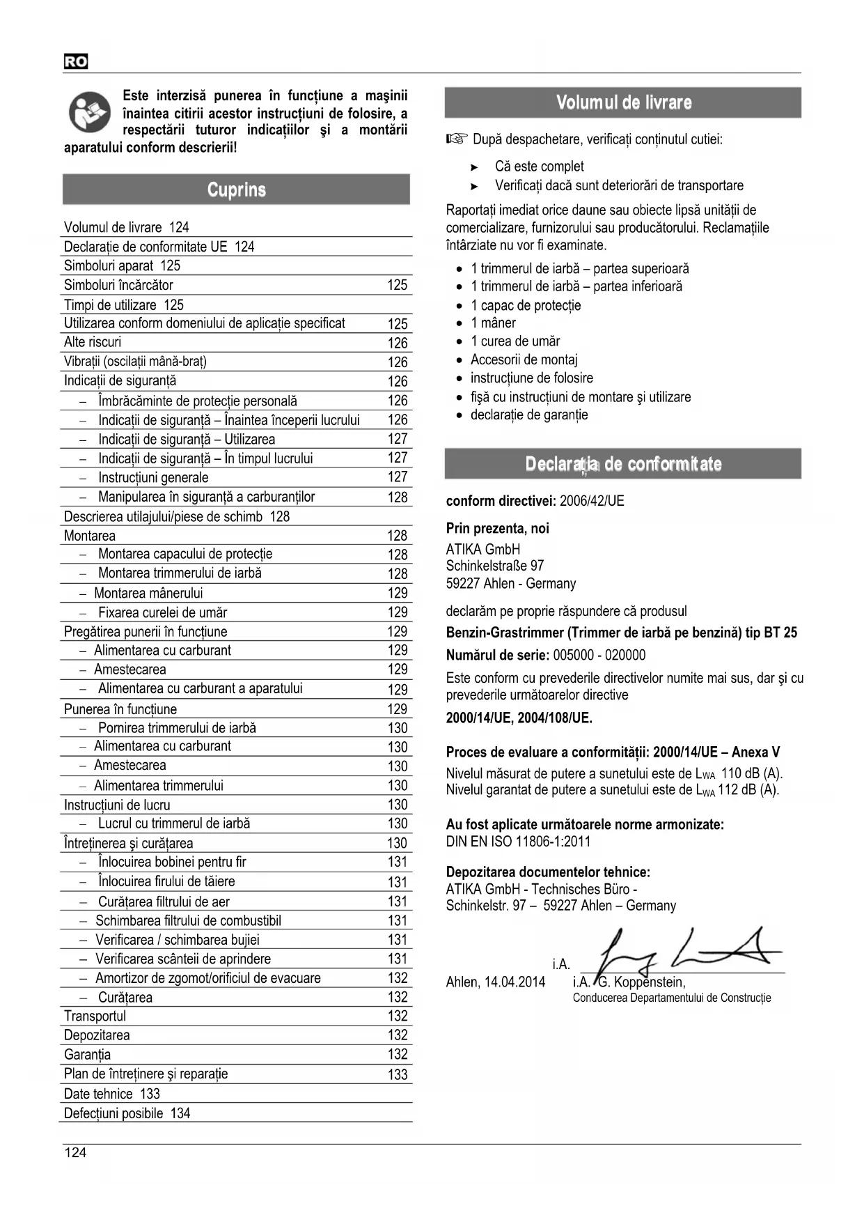 BT 25 - Tăietor de iarbă ATIKA - Manual de utilizare gratuit