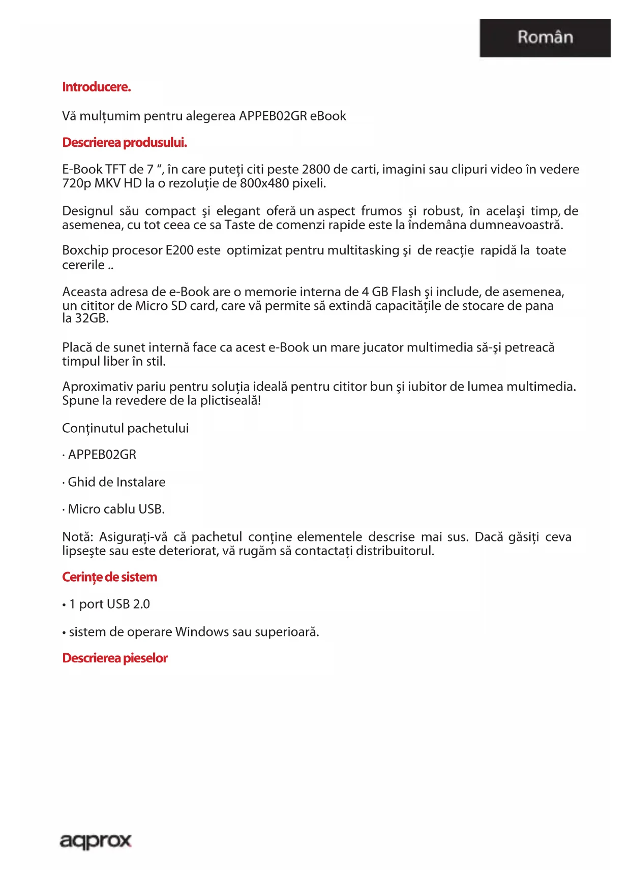 APPEB02GR - Cititor electronic Approx - Manual de utilizare gratuit