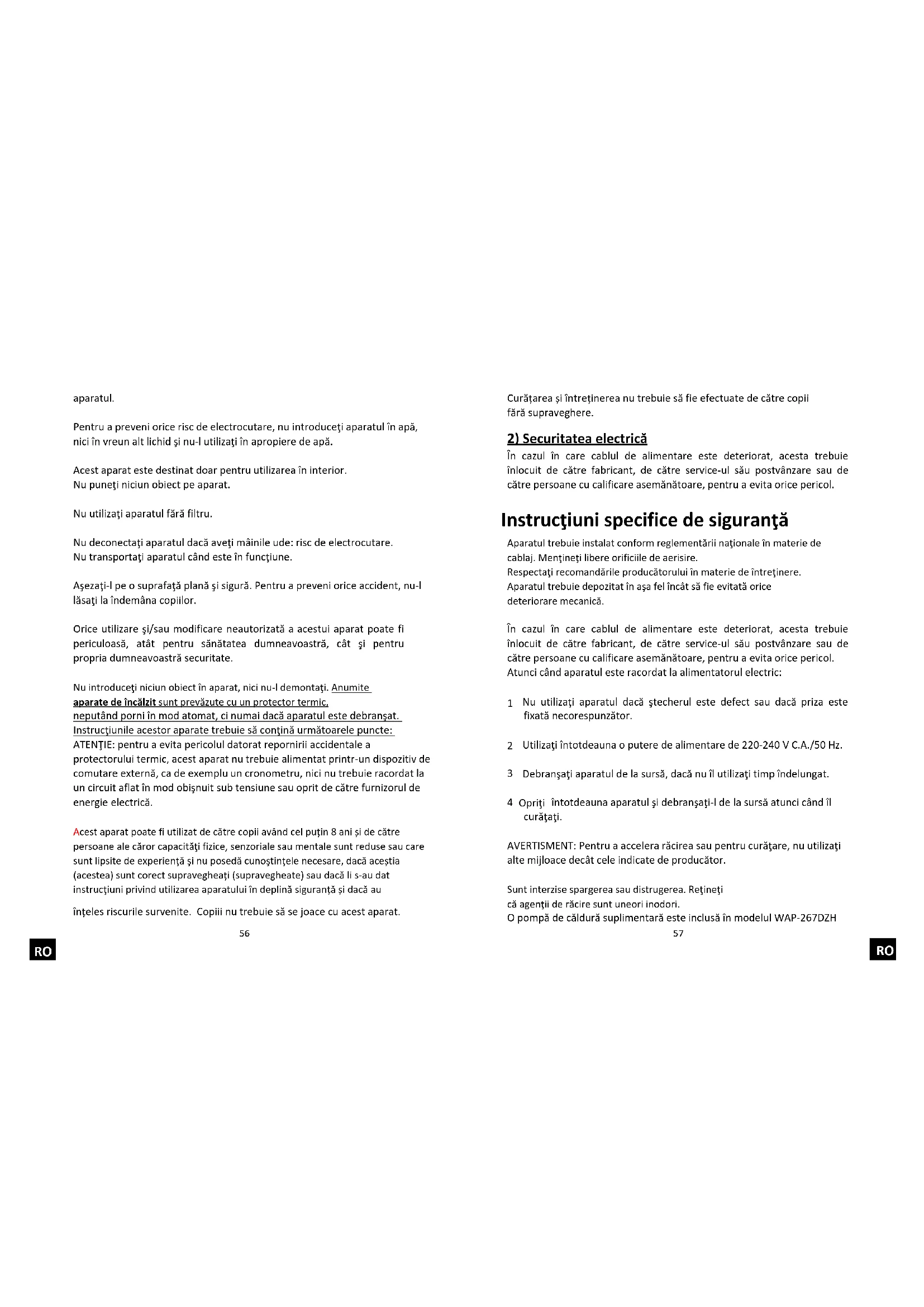 neputândporniînmodatomat,cinumaidacăaparatulestedebranşat. Instrucţiunileacestoraparatetrebuiesăconţinăurmătoarelepuncte: ATENŢIE:pentruaevitape ricolulda toratreporniriiaccidentalea protectoruluitermic,acestaparatnutrebuiealimentatprintr‐undispozitivde comutareexternă,cadeexempluuncronometru,nicinutrebuieracordatla uncircuitaflatînmodobişnuitsubtensiunesauopritdecătrefurnizorulde energieelectrică.
