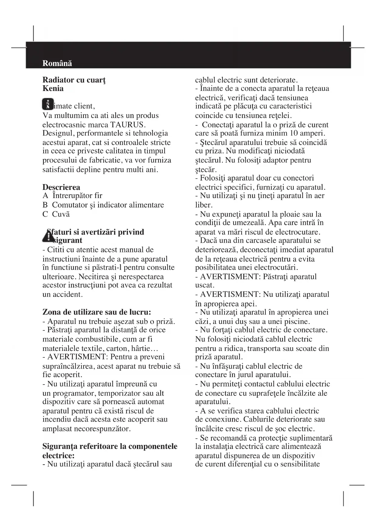 MANUAL DE UTILIZARE Kenia TAURUS