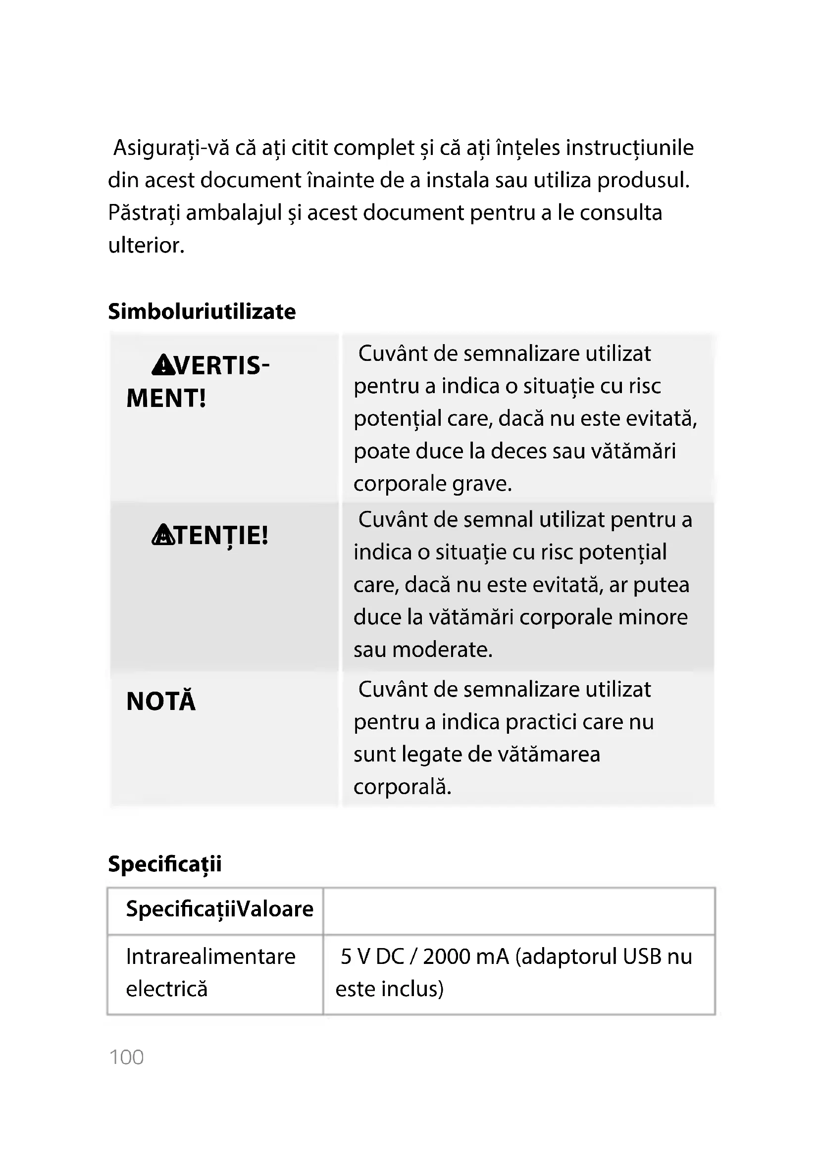 - Asigurați-vă că ați citit complet și că ați înțeles instrucțiunile din acest document înainte de a instala sau utiliza produsul. Păstrați ambalajul și acest document pentru a le consulta ulterior.