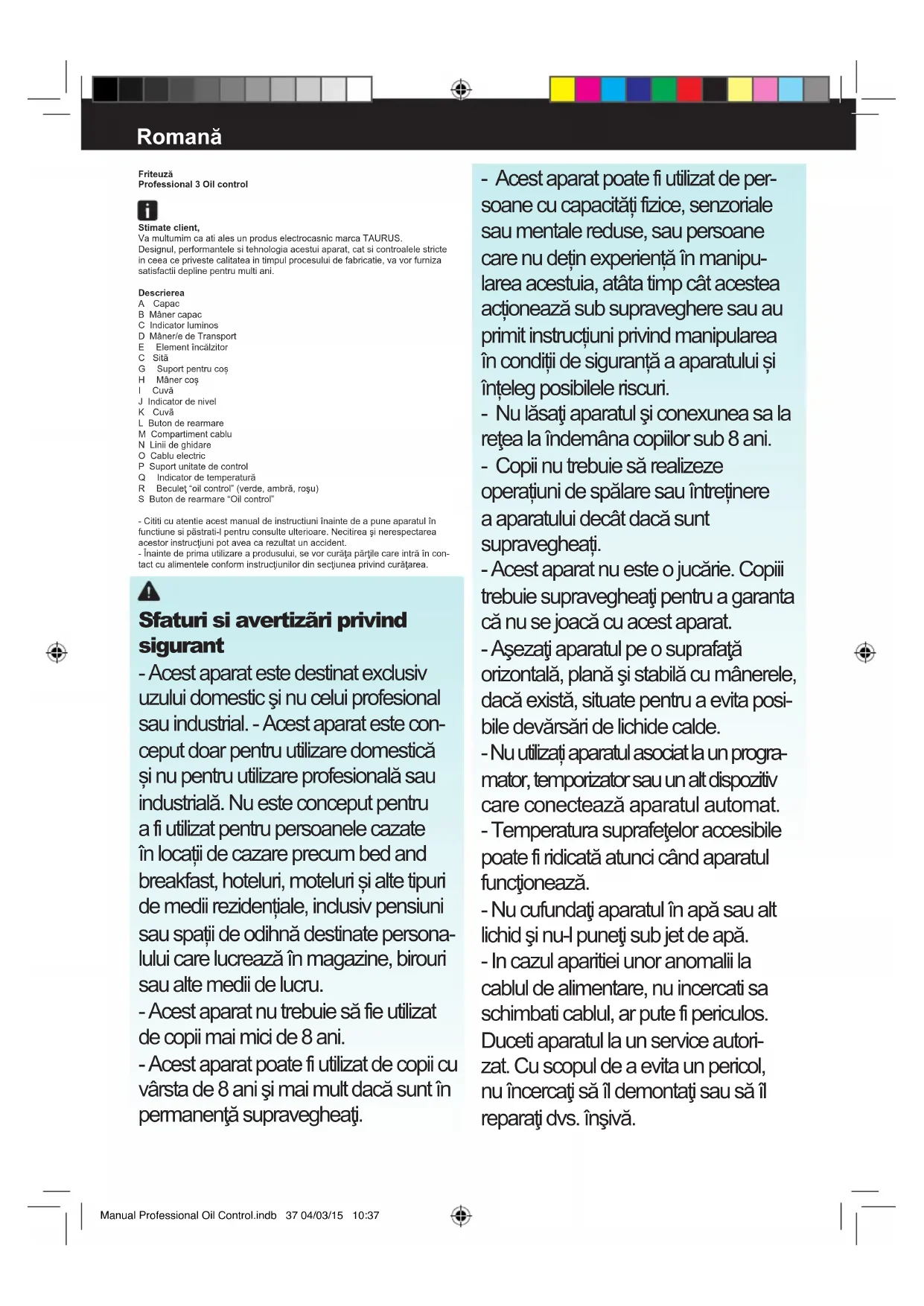 MANUAL DE UTILIZARE Professional 3 Oil Control TAURUS