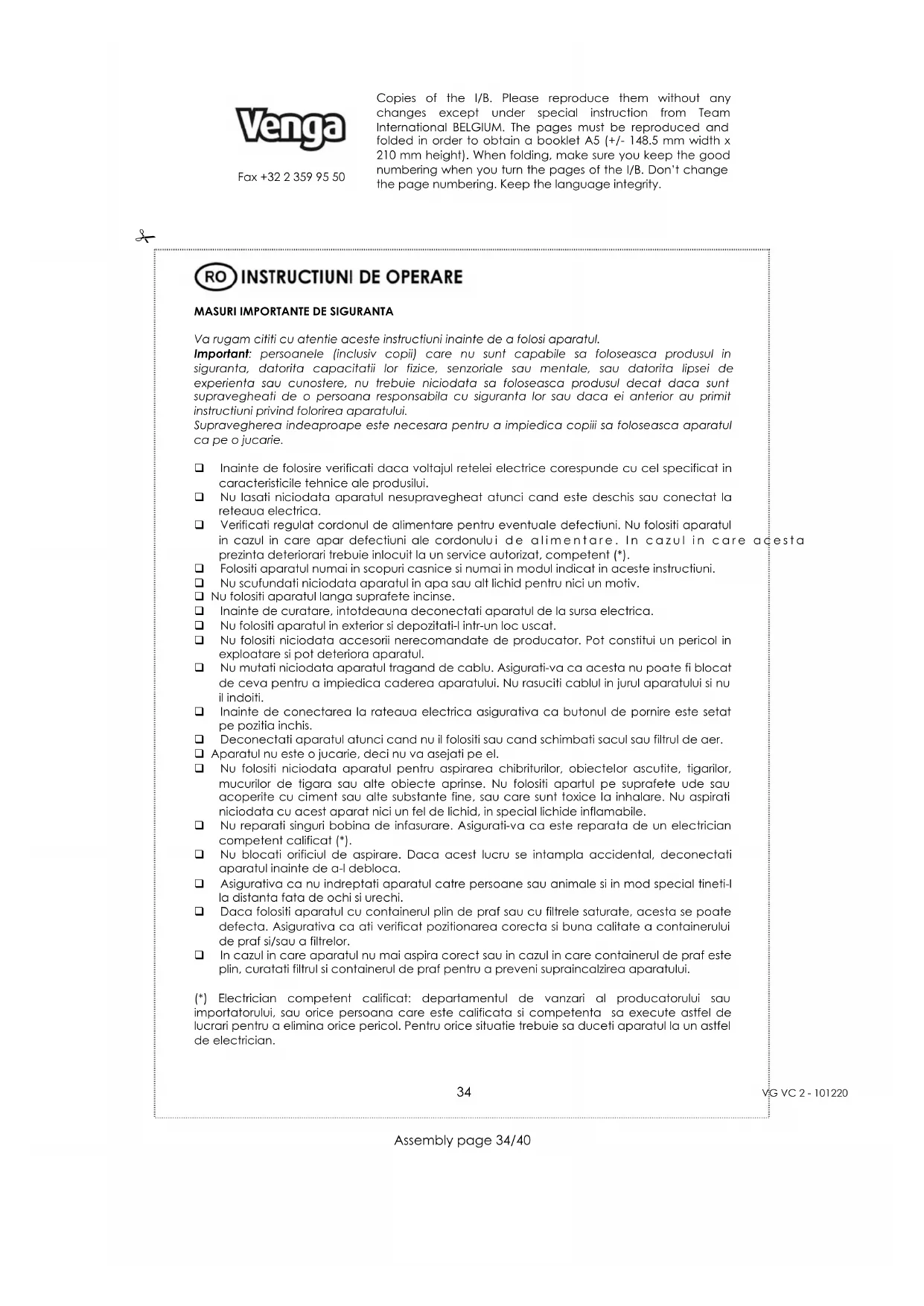 MANUAL DE UTILIZARE VG VC 2 Venga
