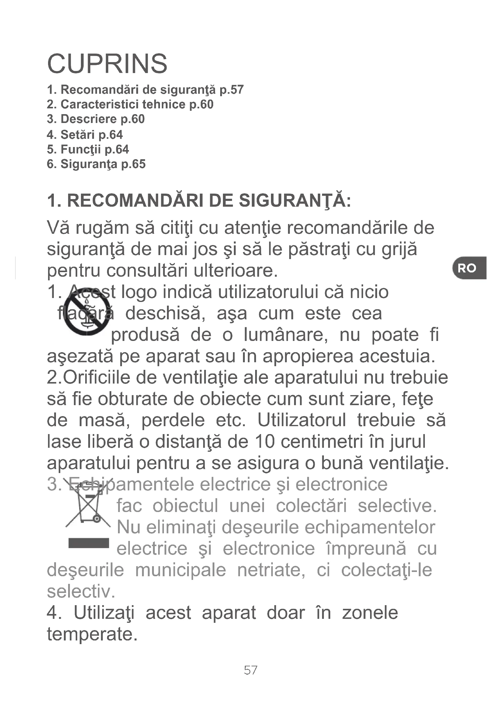 1. Recomandări de siguranţă p.57