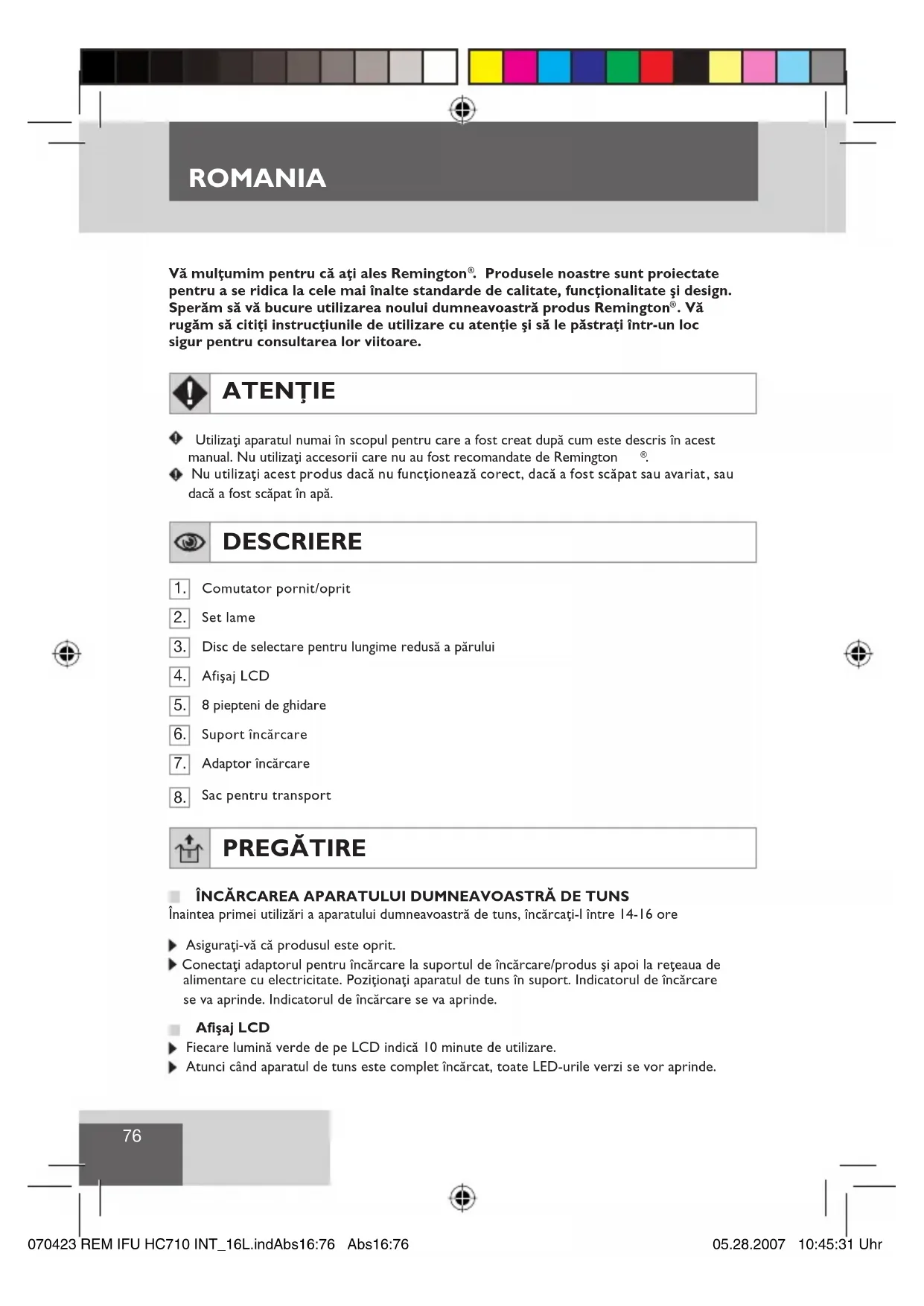 MANUAL DE UTILIZARE HC710 REMINGTON
