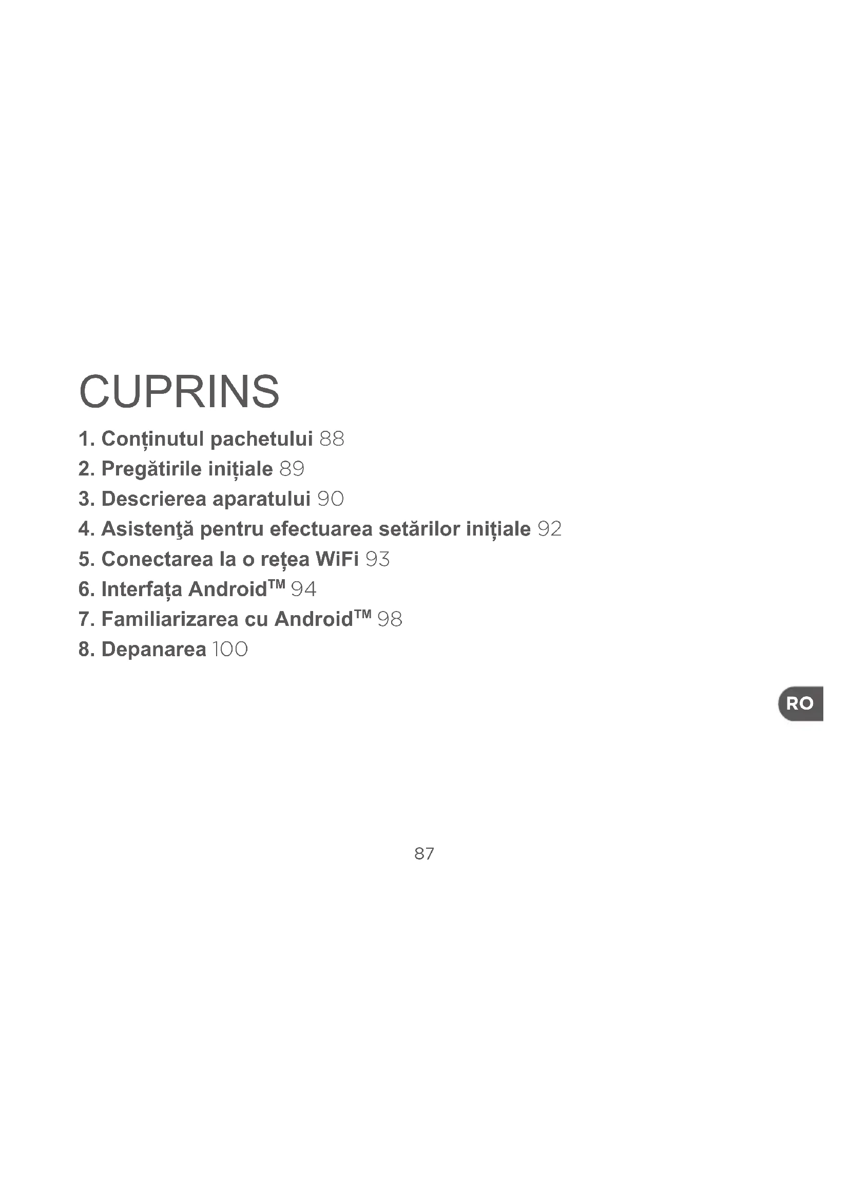 - Aplicații diverse RECOMANDĂRI: Pentru parametrarea tabletei, vă recomandăm să vă situați în zona WiFi a rețelei de internet pe care o utilizați în mod frecvent.93