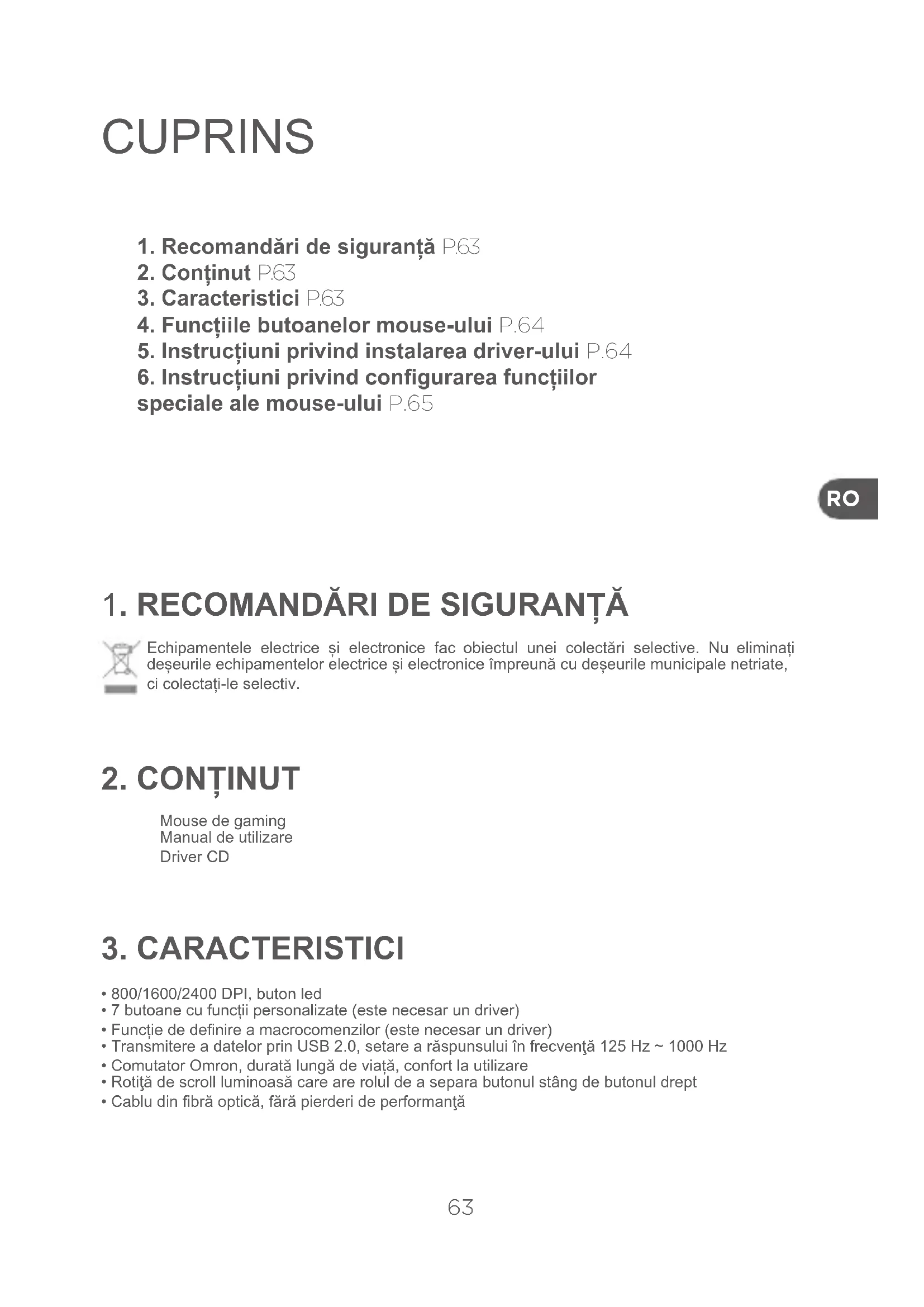 Echipamentele electrice și electronice fac obiectul unei colectări selective. Nu eliminați deșeurile echipamentelor electrice și electronice împreună cu deșeurile municipale netriate, ci colectați-le selectiv.64