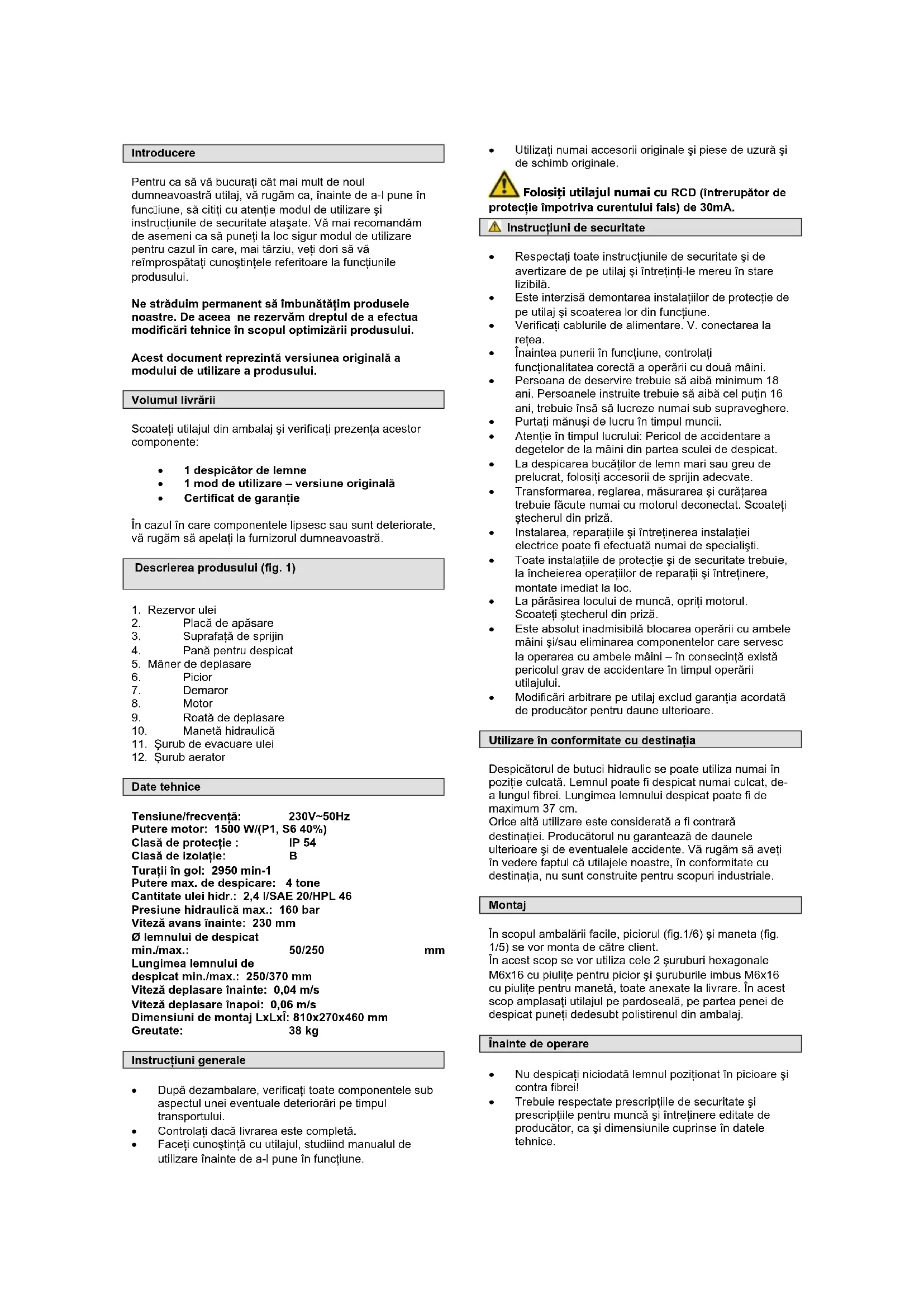 Persoana care deserveşteutilajul,inaînte de a-l folosi, trebuie sa citeascá cu atentie modul de/utilizare.