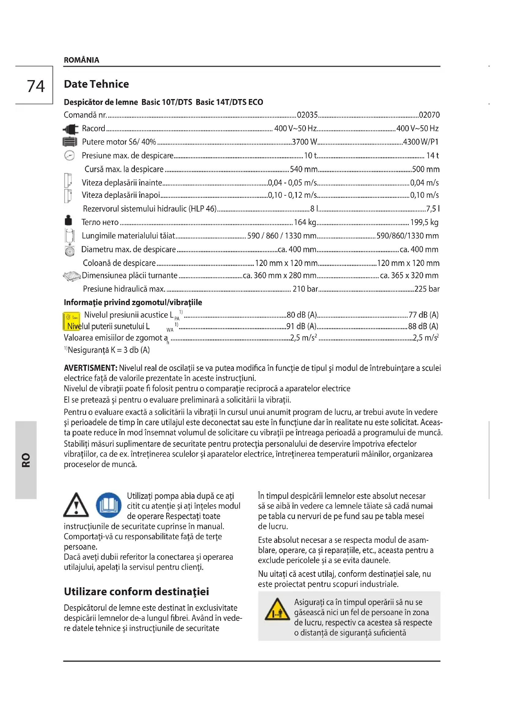 Despicatorul de lemne este destinat in exclusivitate despicarii lemnelor de-a lungul fibrei. Avand in vedere datele tehnice si instruuntile de securitate