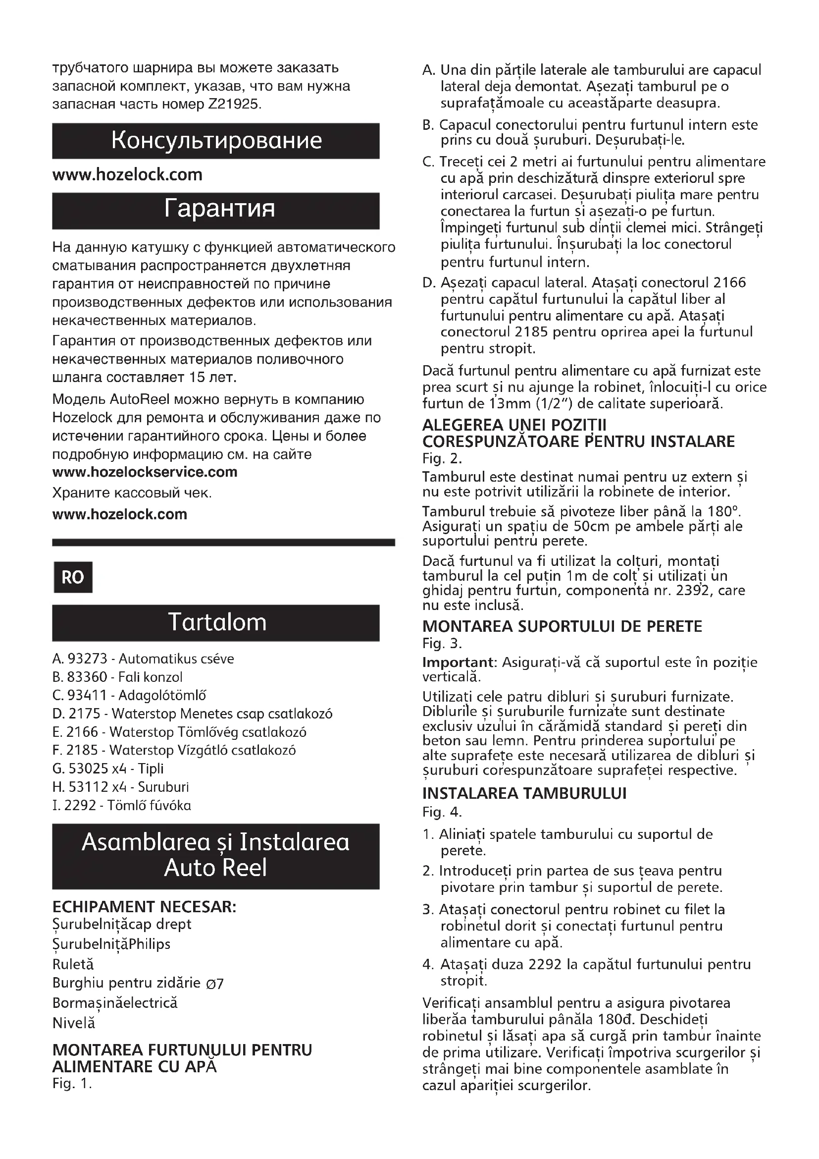 MANUAL DE UTILIZARE Auto Reel 2490 HOZELOCK