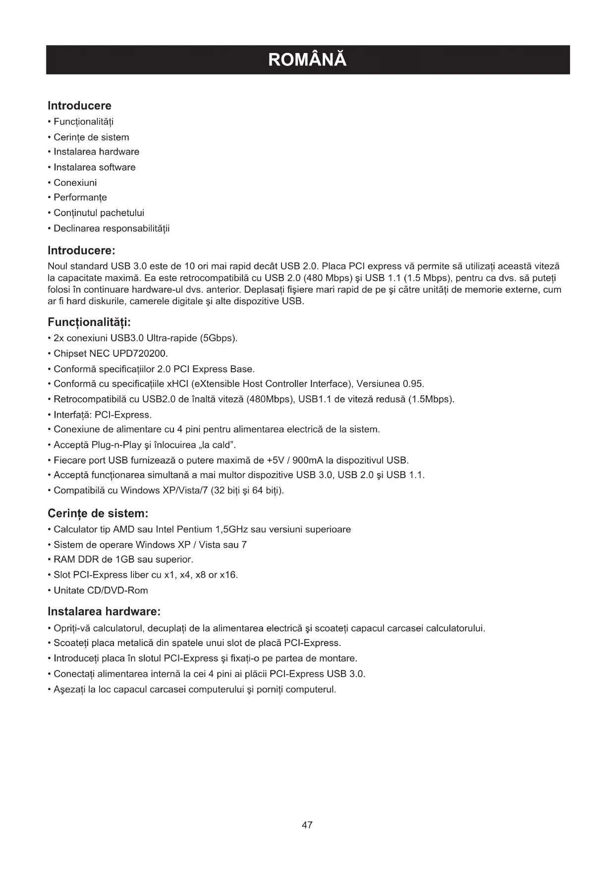 MANUAL DE UTILIZARE CMPPCIE2USB3 KONIG