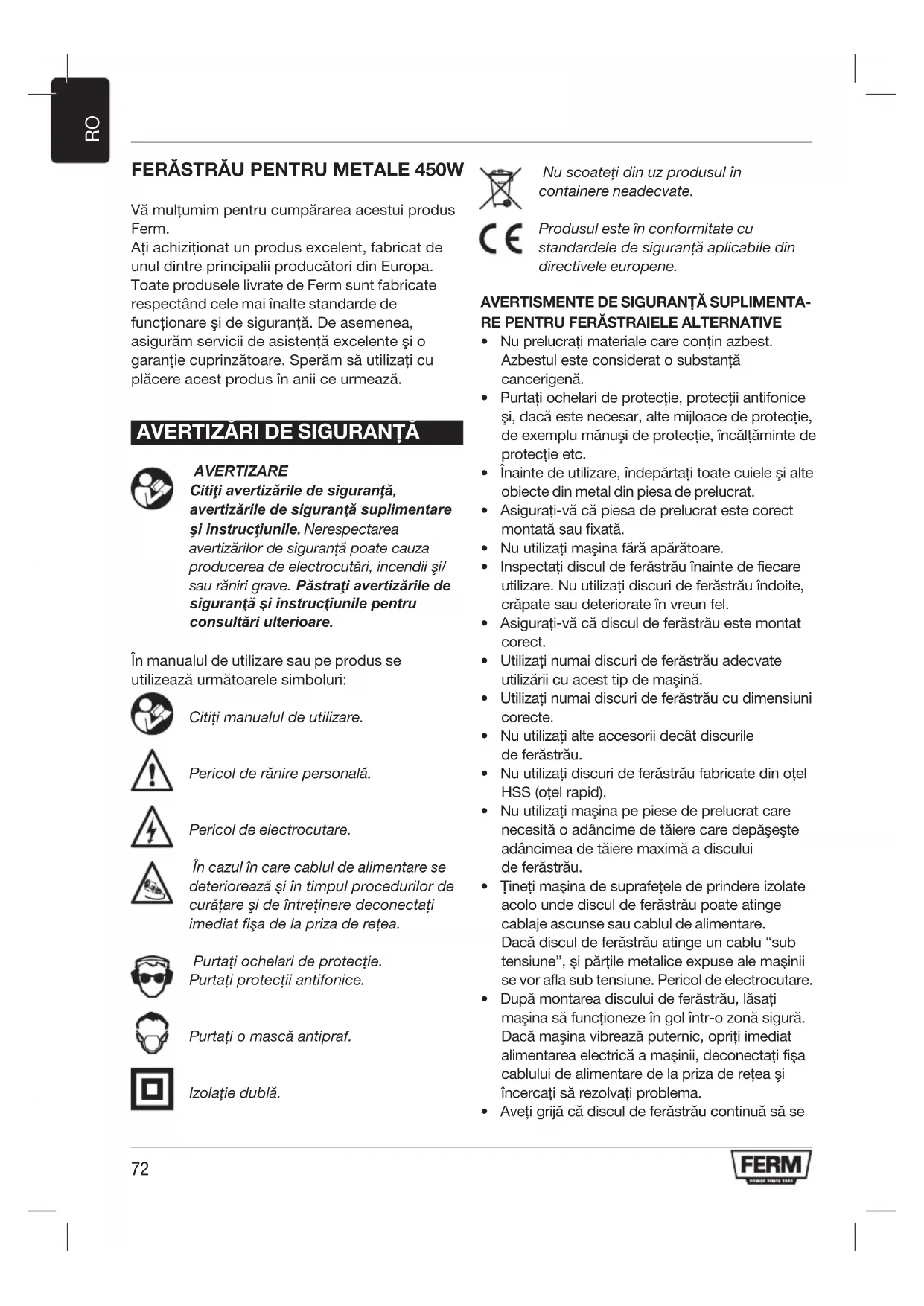Vă mulţumim pentru cumpărarea acestui produs Ferm. Aţi achiziţionat un produs excelent, fabricat de unul dintre principalii producători din Europa. Toate produsele livrate de Ferm sunt fabricate respectând cele mai înalte standarde de funcţionare şi de siguranţă. De asemenea, asigurăm servicii de asistenţă excelente şi o garanţie cuprinzătoare. Sperăm să utilizaţi cu plăcere acest produs în anii ce urmează.