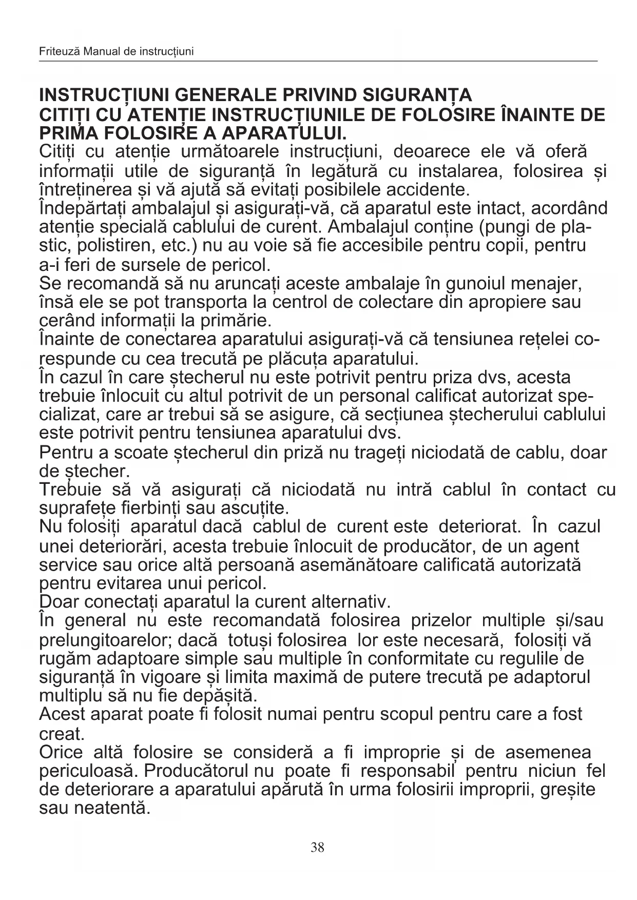 ASIGURATI-VA, CÁ AL DVS COPIL NU SE JOACÁ CU APARATUL. IN CAZUL IN CARE DECIDEÇI SÁ NU MAI FOLOSITI VREODATA APARATUL, FACETI-L IREPARABIL TÁIND CABLUL DE CURRENT DUPÁ SCOATEREÀ STECHERULUI DIN PRIZÁ.
