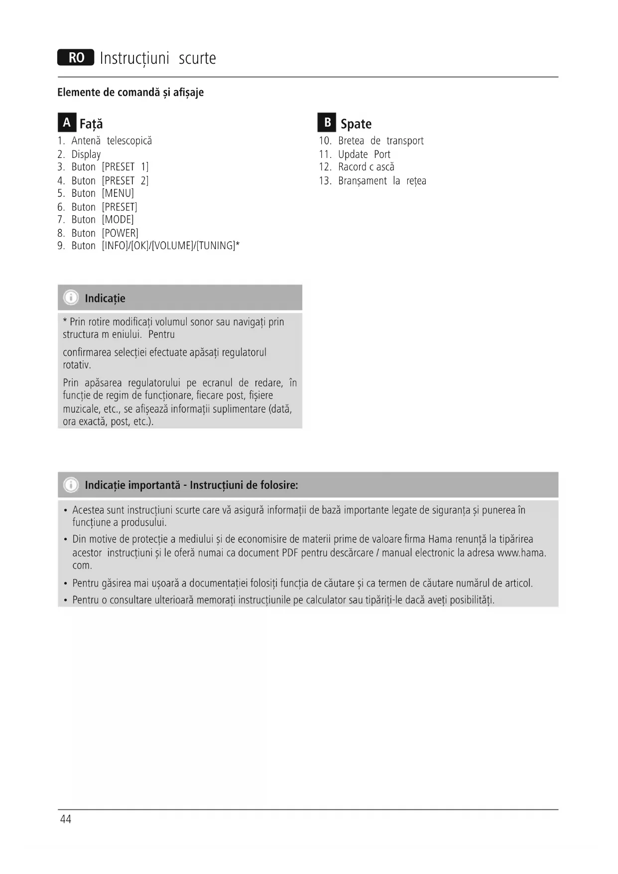 - Din motive de protecție amediului șideeconomisiredematerii prime de valoare rma Hama renunță la tipărirea acestor instrucțiuni șileoferă numai ca document PDF pentru descărcare/manual electronic la adresa www.hama. com.