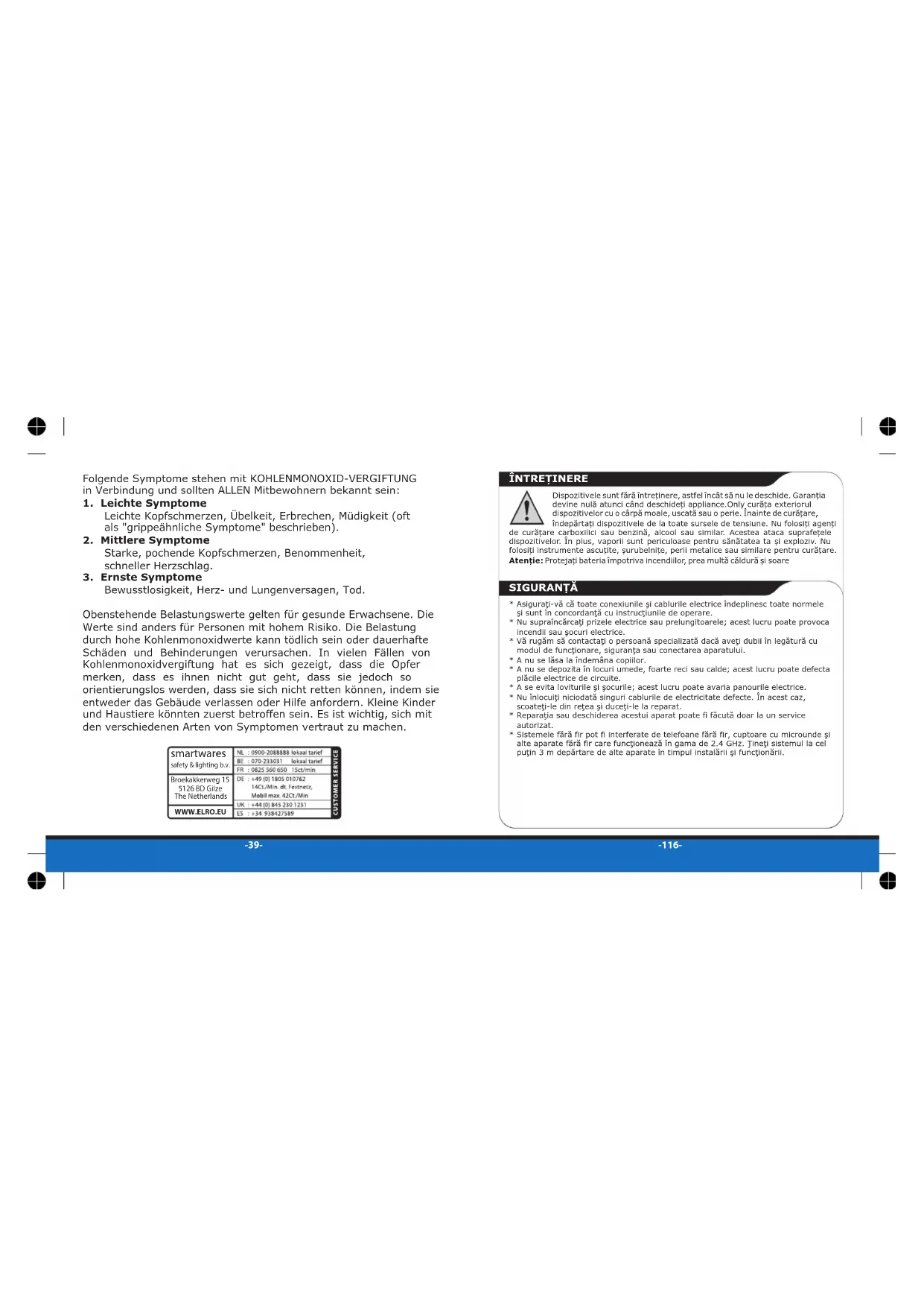 Acest produs este însoțit de o garanție din fabrică, ce respectă reglementările UE. Garanția acoperă numărul de ani marcat pe ambalaj, începând cu data achiziției. Păstrați chitanța – dovada achiziției este necesară în vederea menținerii valabilității garanției. Dacă apar probleme, că rugăm să contactați magazinul din care ați achiziționat produsul. Pentru mai multe informații legate de produs, apelați linia noastră directă cu clienții sau vizitați-ne pe: www.elro.eu. Acolo puteți să și înregistrați produsul.