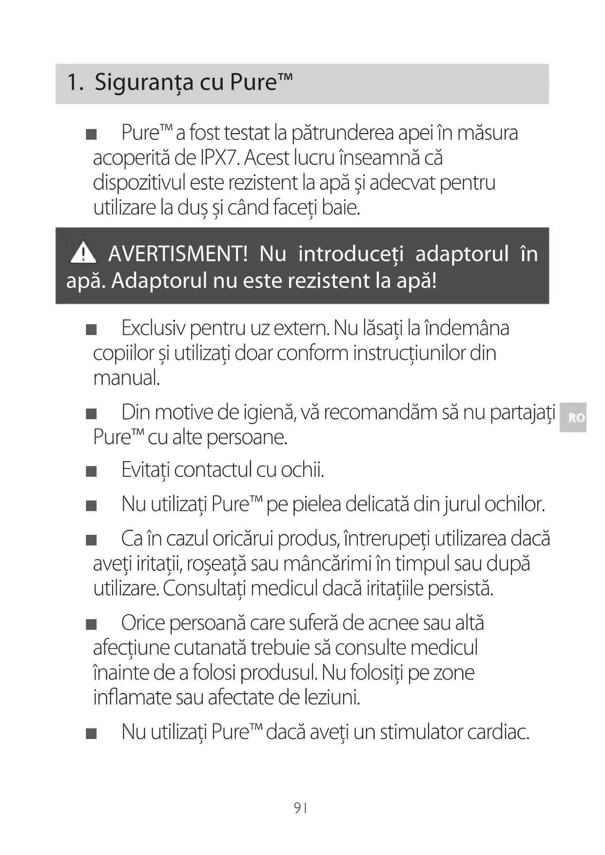 Înaintea primei utilizări a Pure™, citiți cu atenție aces manual de utilizare în întregime. Acordați o atenție deosebită procedurilor de utilizare a dispozitivului și celor de post-utilizare. Citiți cu atenție toate avertizările și precauțiile de siguranță și respectați-le cu strictețe în momentul utilizării.