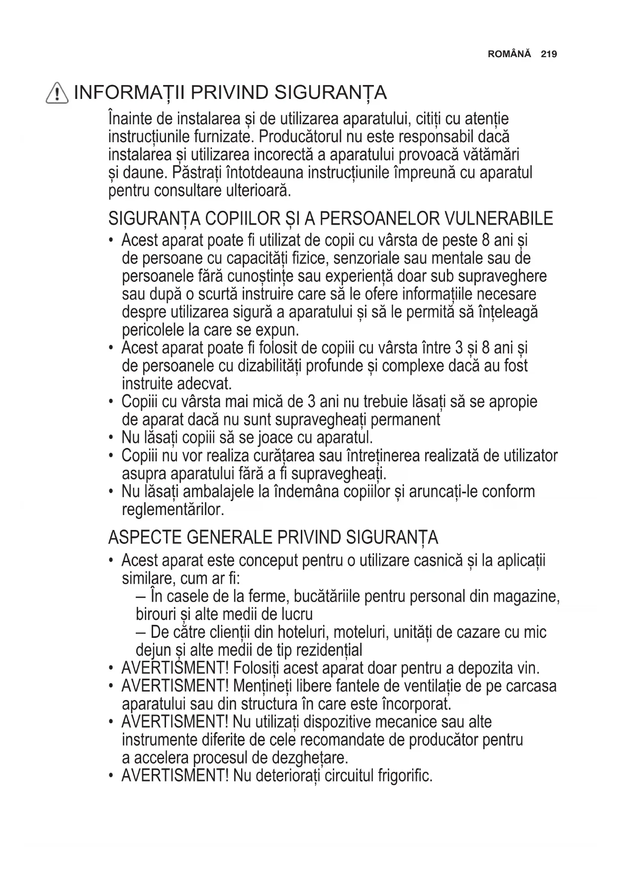 - AVERTISMENT! Nu deteriorați circuitul frigoric. INFORMAȚIIPRIVINDSIGURANȚA220 www.aeg.com INSTALAREA AVERTISMENT! Doaropersoanăcalicatătrebuie săinstalezeacestaparat.