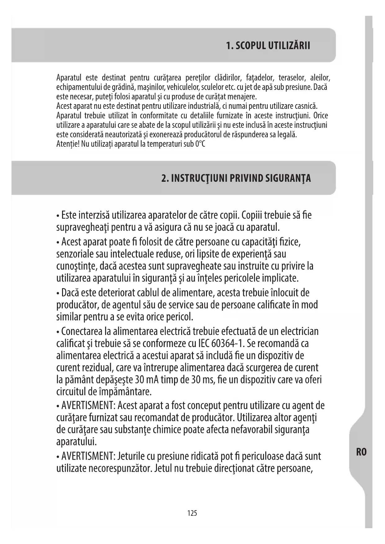 - AVERTISMENT: Aparatele de curățare cu presiune înaltă nu trebuie utilizate de către copii sau de către personal neinstruit.