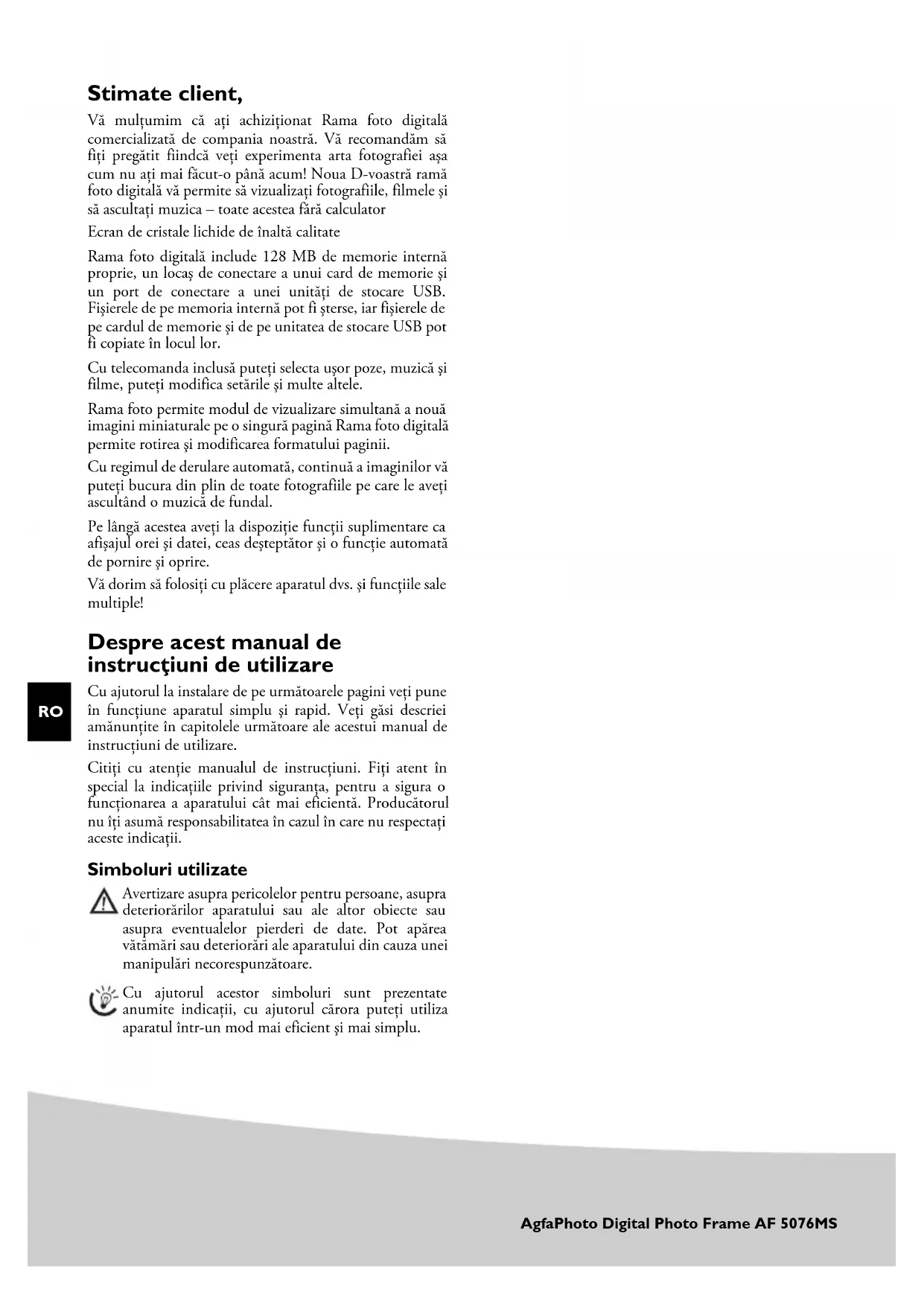 AF 5076MS - Rama foto digitală AGFA - Manual de utilizare gratuit