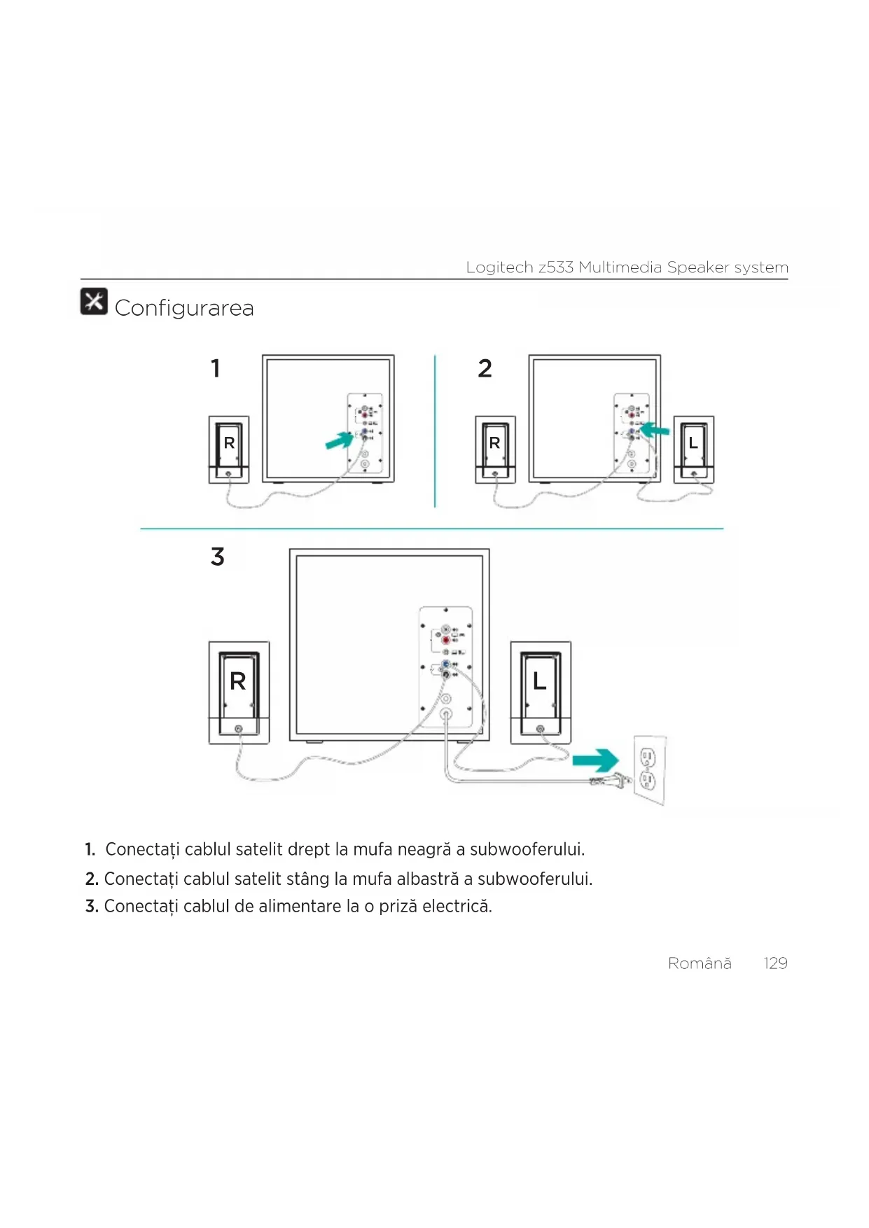5. Documentaţie pentru utilizatorLogitech z533 Multimedia Speaker systemRomână 129