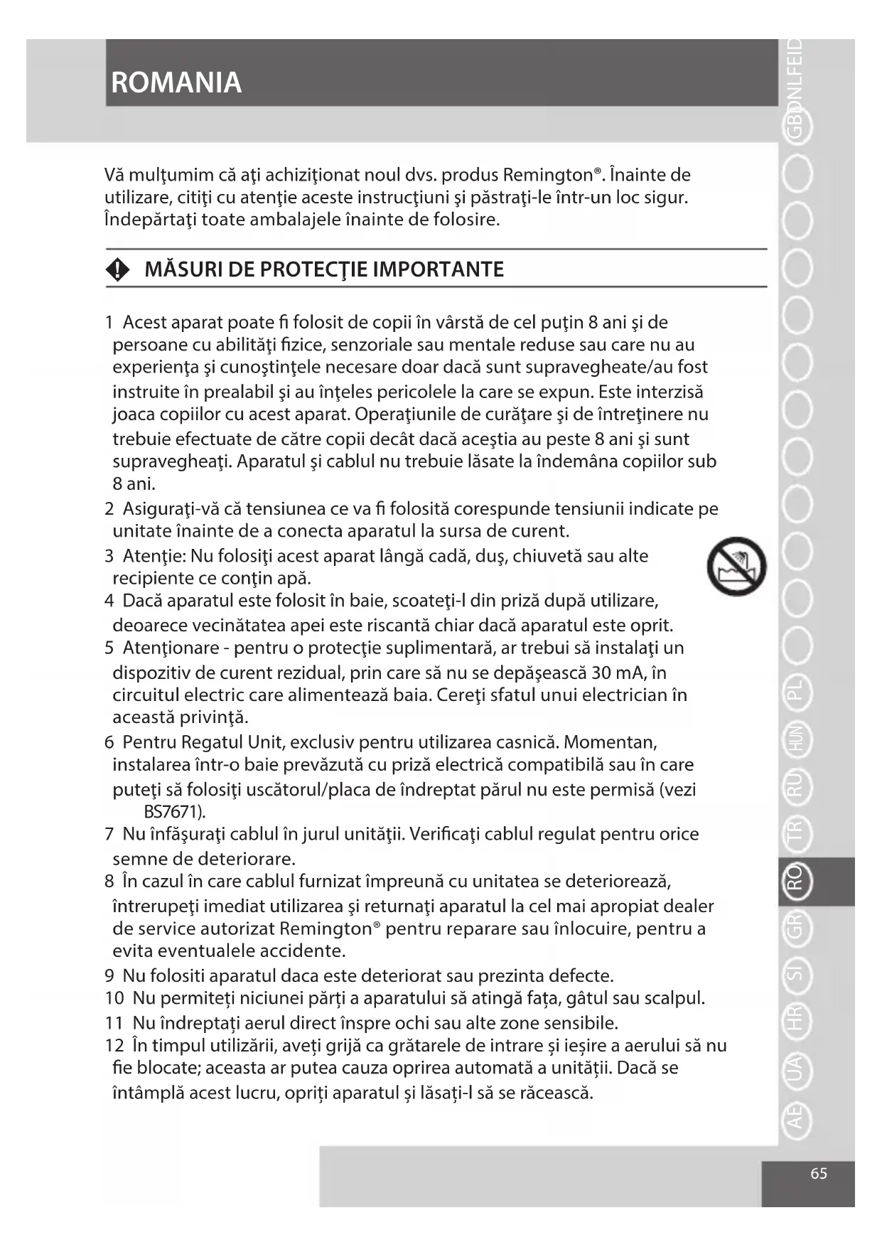 Vă mulțumim că ați achiziționat noul dvs. produs Remington®. Înainte de utilizare, citiți cu atenție aceste instrucțiuni și păstrați-le într-un loc sigur. Îndepărtați toate ambalajele înainte de folosire.