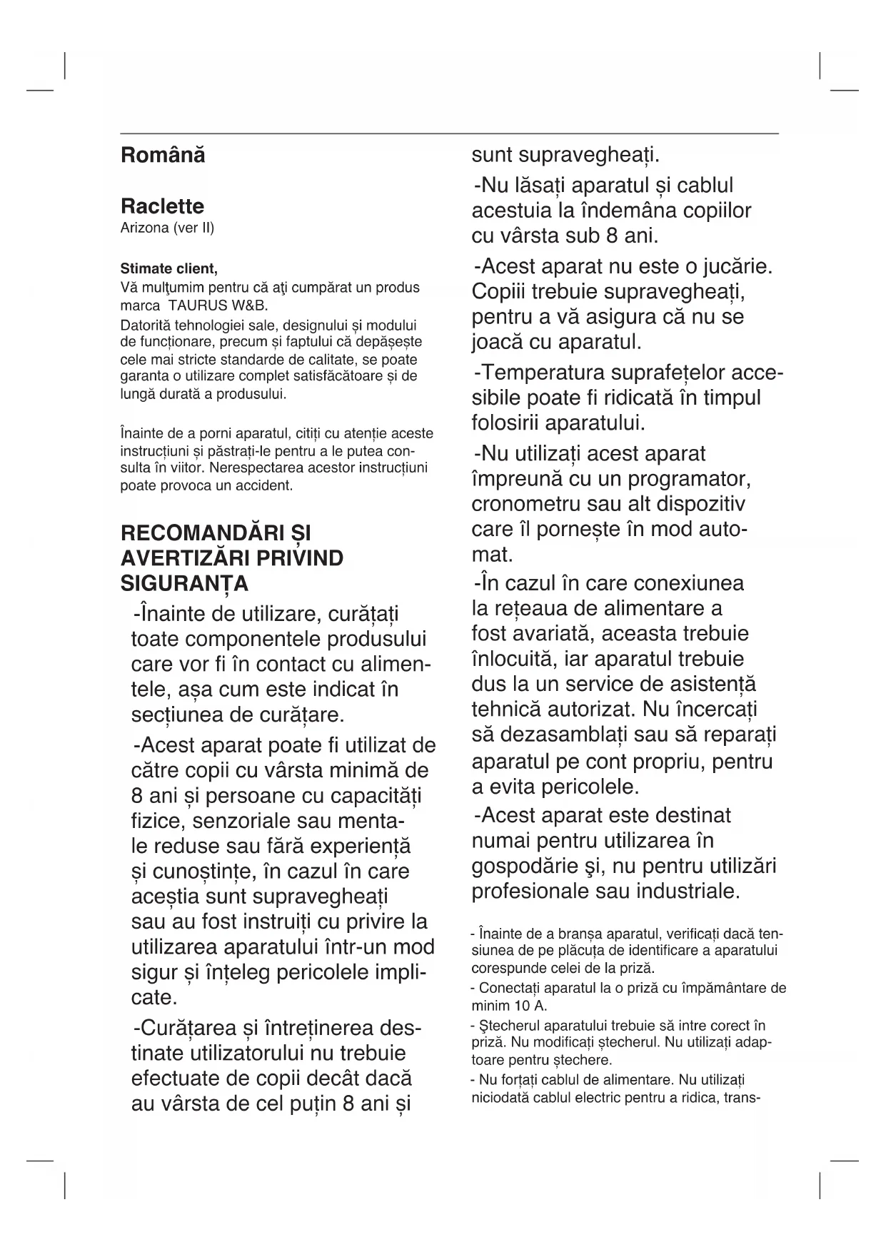 Arizona - Appareil à fondue, raclette et wok TAURUS - Manual de utilizare gratuit