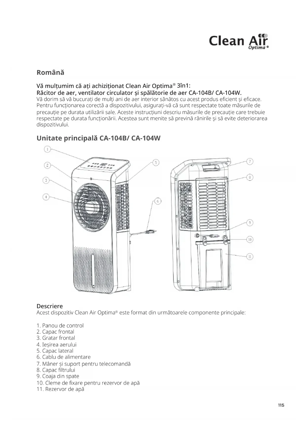 MANUAL DE UTILIZARE CA104 Clean Air Optima