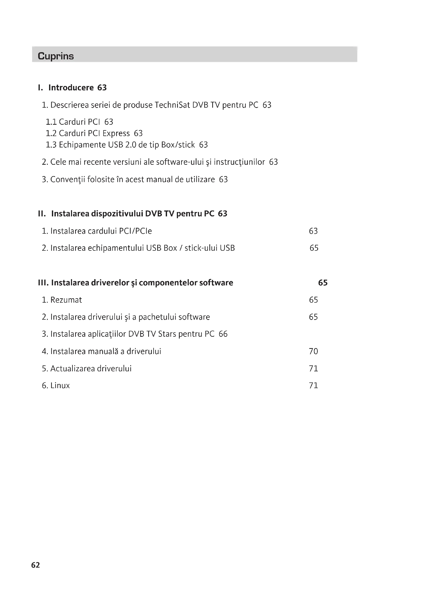 1. Descrierea seriei de produse TechniSat DVB TV pentru PC 63