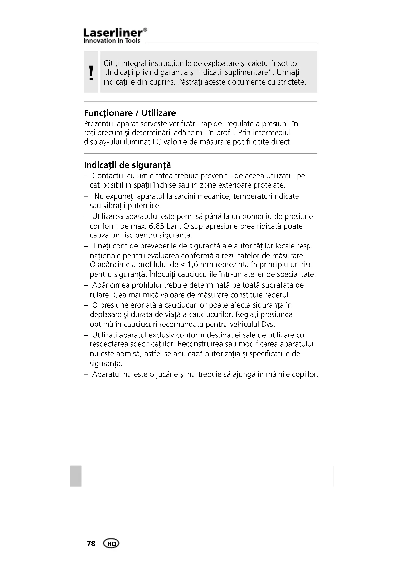 MANUAL DE UTILIZARE TireCheck Laserliner