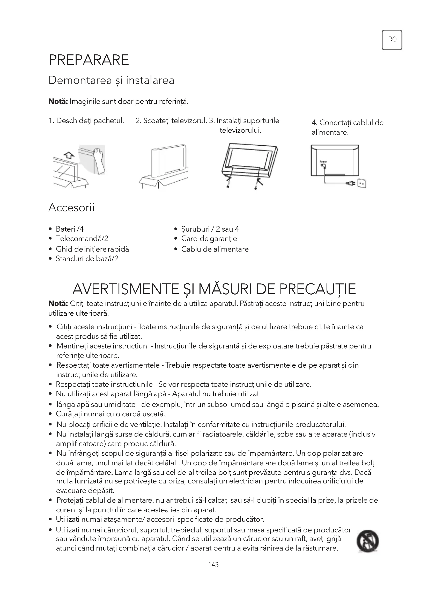Vă rugăm să citiți aceste instrucțiuni înainte de a folosi televizorul și păstrați-le pentru referințe ulterioare.
