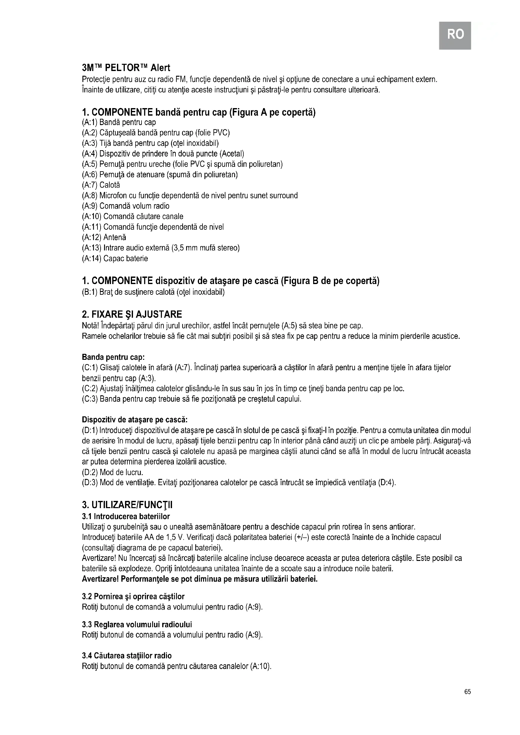 3M™ PELTOR™ Alert Protecţie pentru auz cu radio FM, funcţie dependentă de nivel şi opţiune de conectare a unui echipament extern. Înainte de utilizare, citiţi cu atenţie aceste instrucţiuni şi păstraţi-le pentru consultare ulterioară.