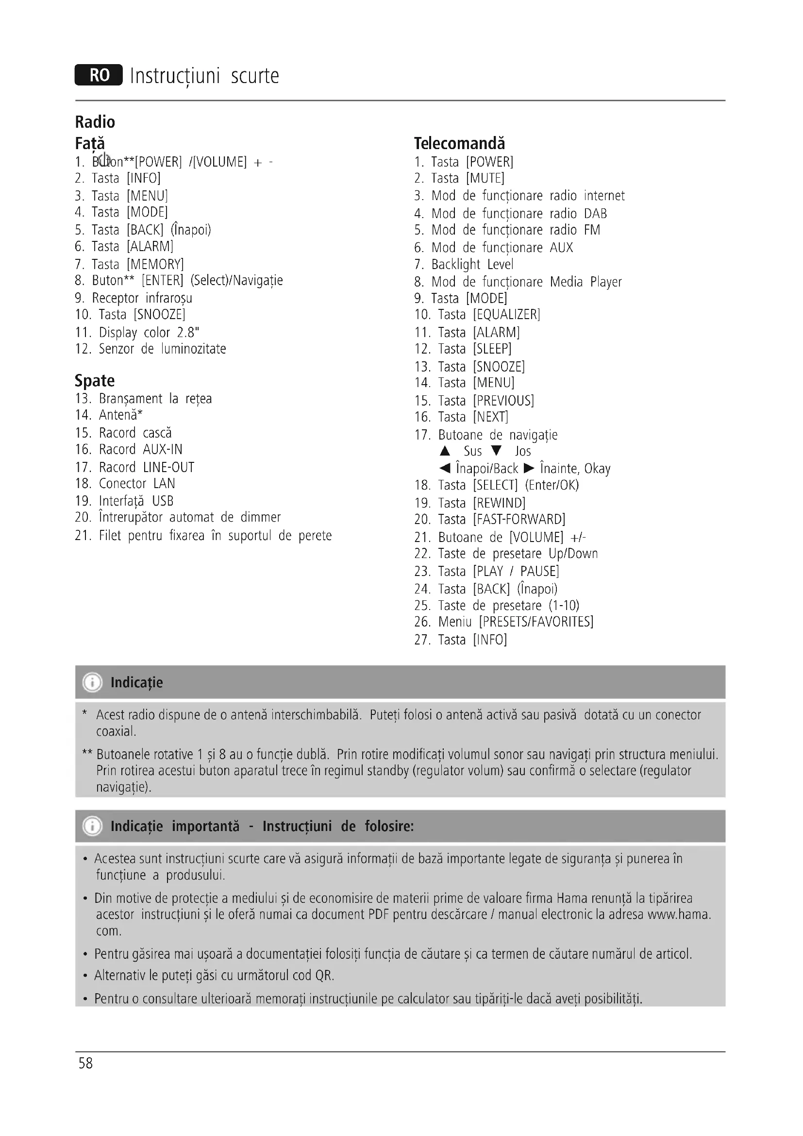 - Din motive de protecție a mediului și de economisire de materii prime de valoare rma Hama renunță la tipărirea acestor instrucțiuni și le oferă numai ca document PDF pentru descărcare / manual electronic la adresa www.hama. com.