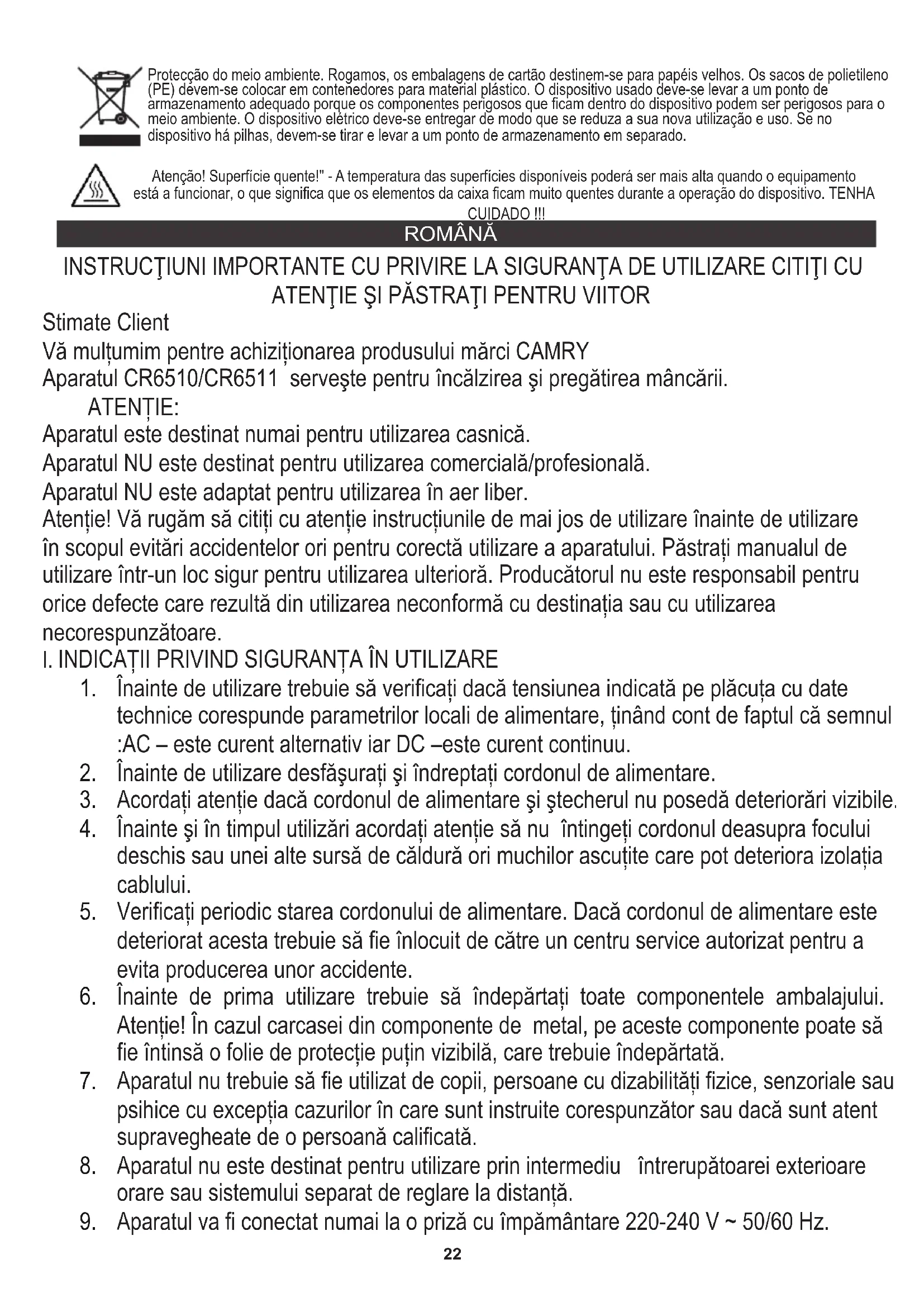 Aparatul CR6510/CR6511 servește pentru încălzirea și pregătirea mâncării.