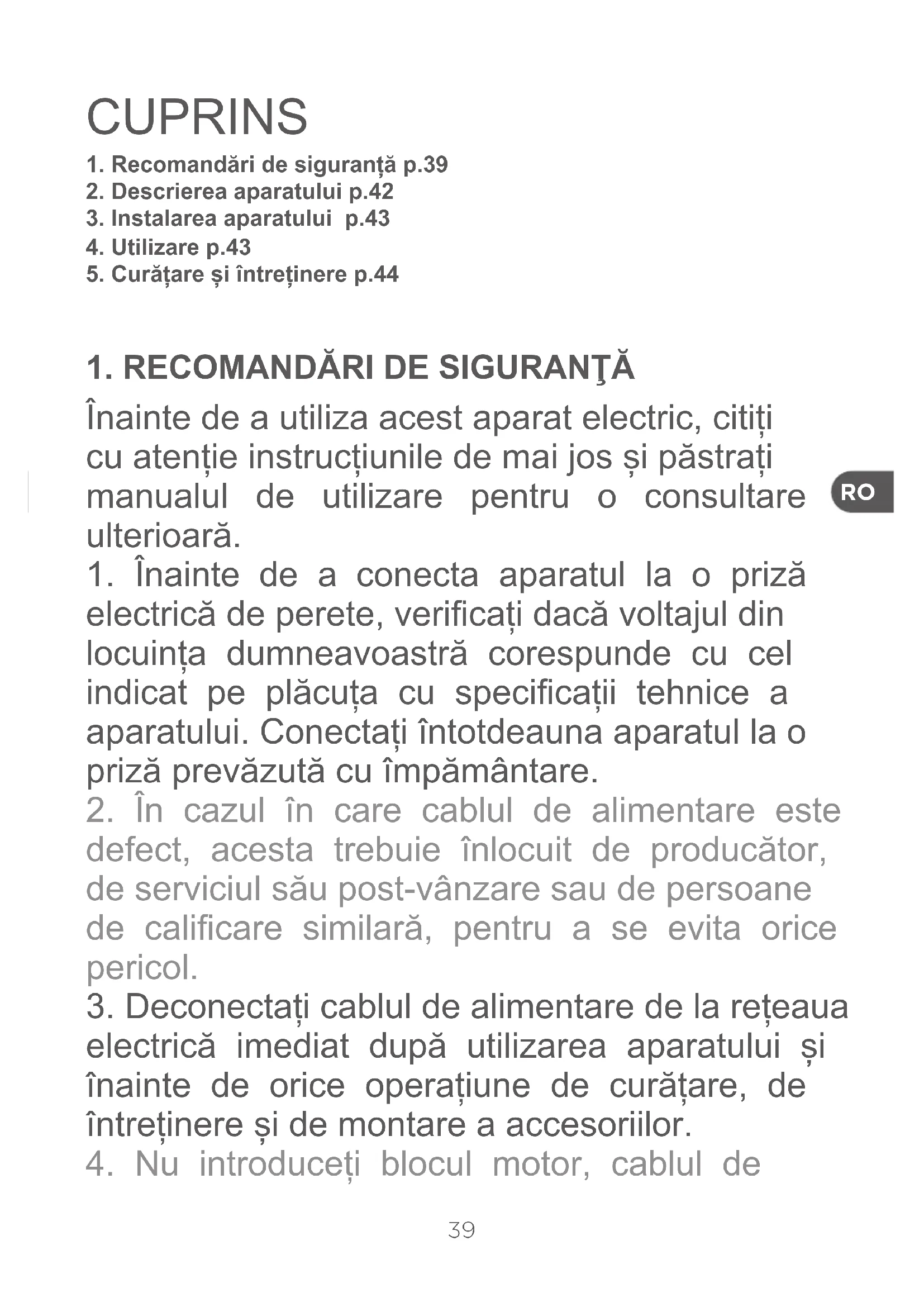 1. Recomandări de siguranță p.39