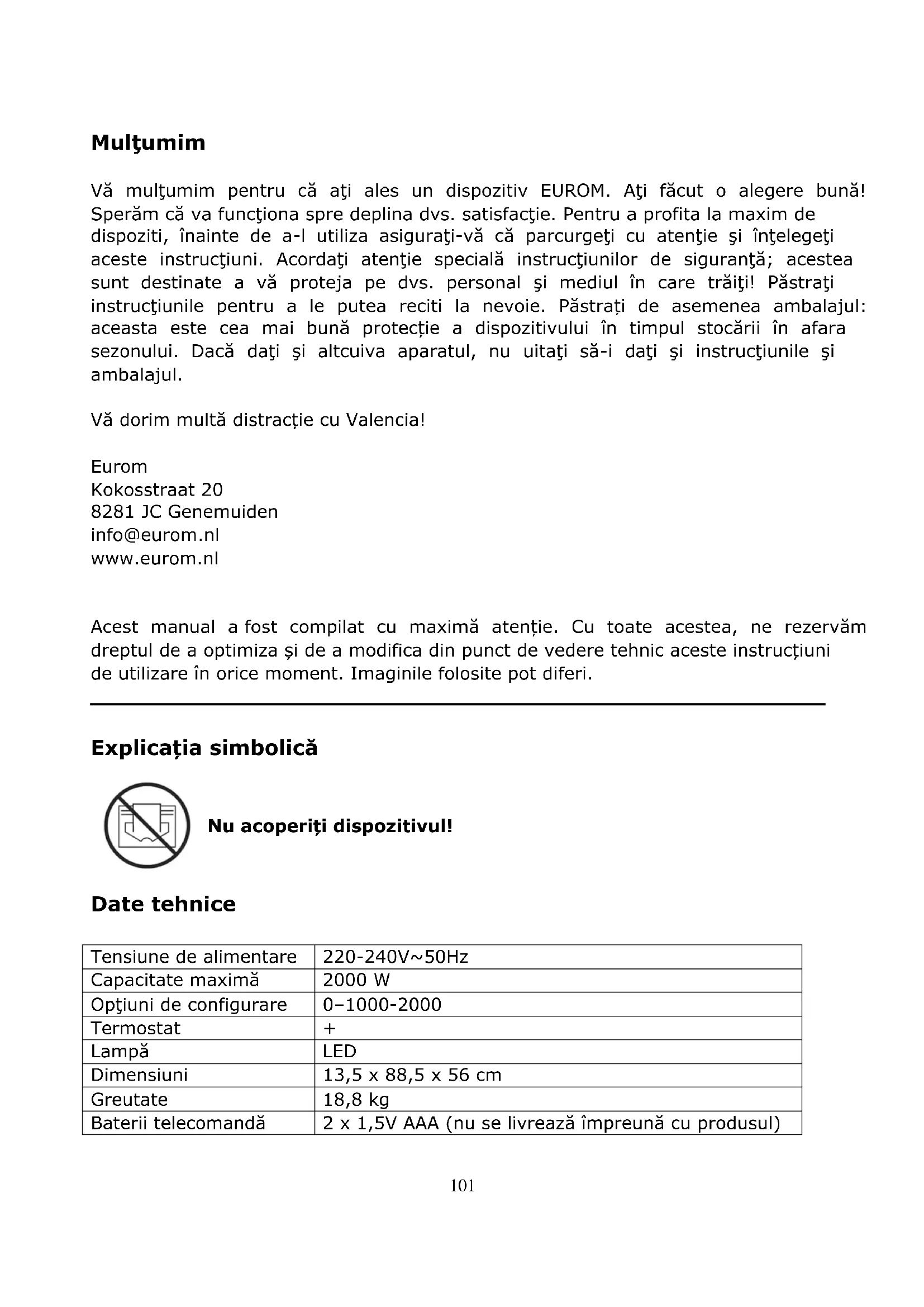 MANUAL DE UTILIZARE Valencia Eurom