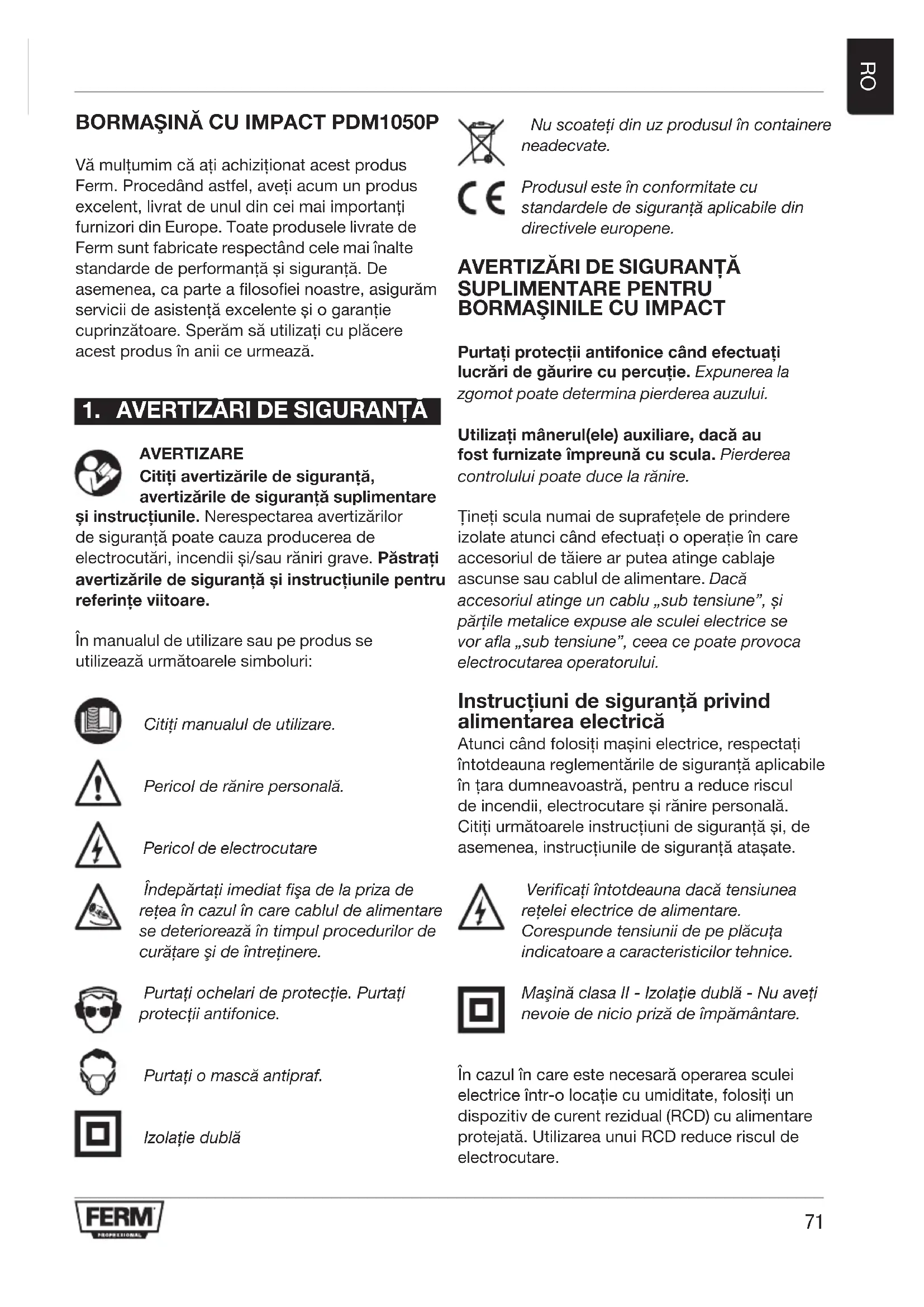Vă mulţumim că aţi achiziţionat acest produs Ferm. Procedând astfel, aveţi acum un produs excelent, livrat de unul din cei mai importanţi furnizori din Europe. Toate produsele livrate de Ferm sunt fabricate respectând cele mai înalte standarde de performanţă şi siguranţă. De asemenea, ca parte a losoei noastre, asigurăm servicii de asistenţă excelente şi o garanţie cuprinzătoare. Sperăm să utilizaţi cu plăcere acest produs în anii ce urmează.