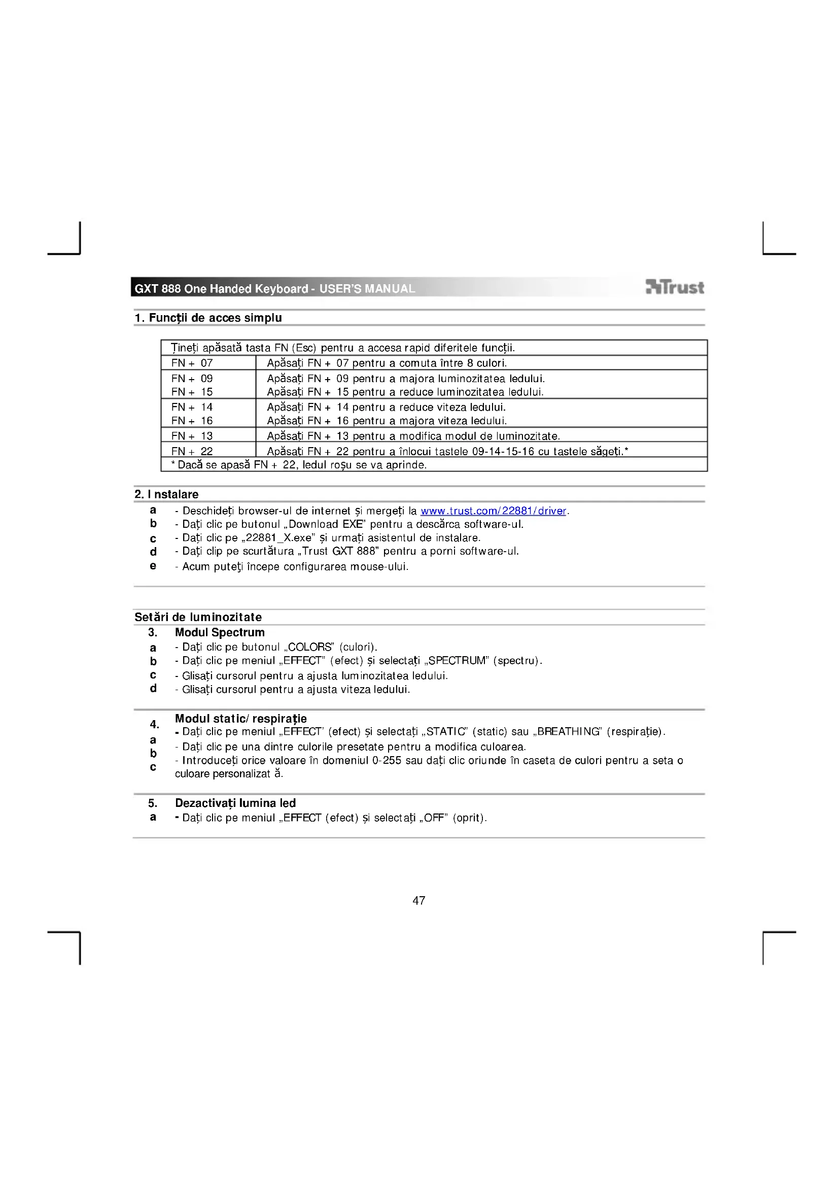 Assa GXT 888 - Tastatură TRUST - Manual de utilizare gratuit