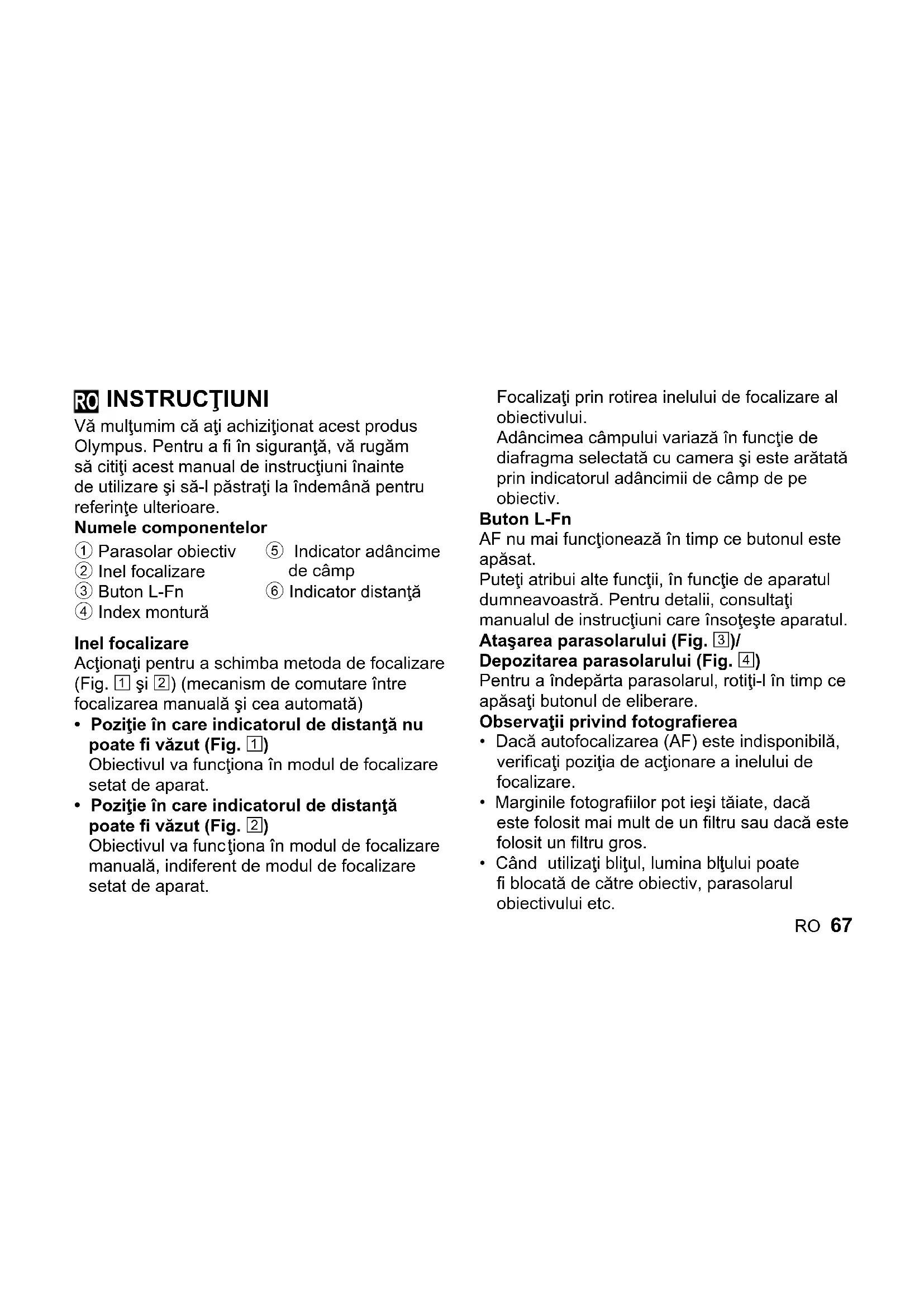 MANUAL DE UTILIZARE M.Zuiko Digital 45mm f1.8 OLYMPUS