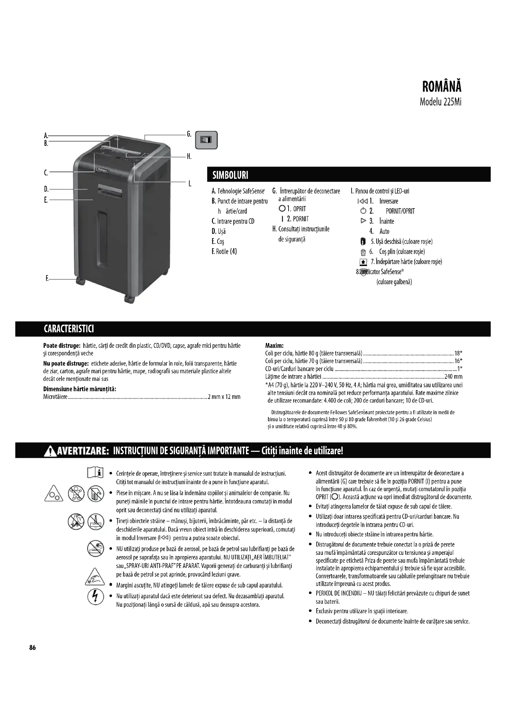 MANUAL DE UTILIZARE Powershred 225Mi FELLOWES
