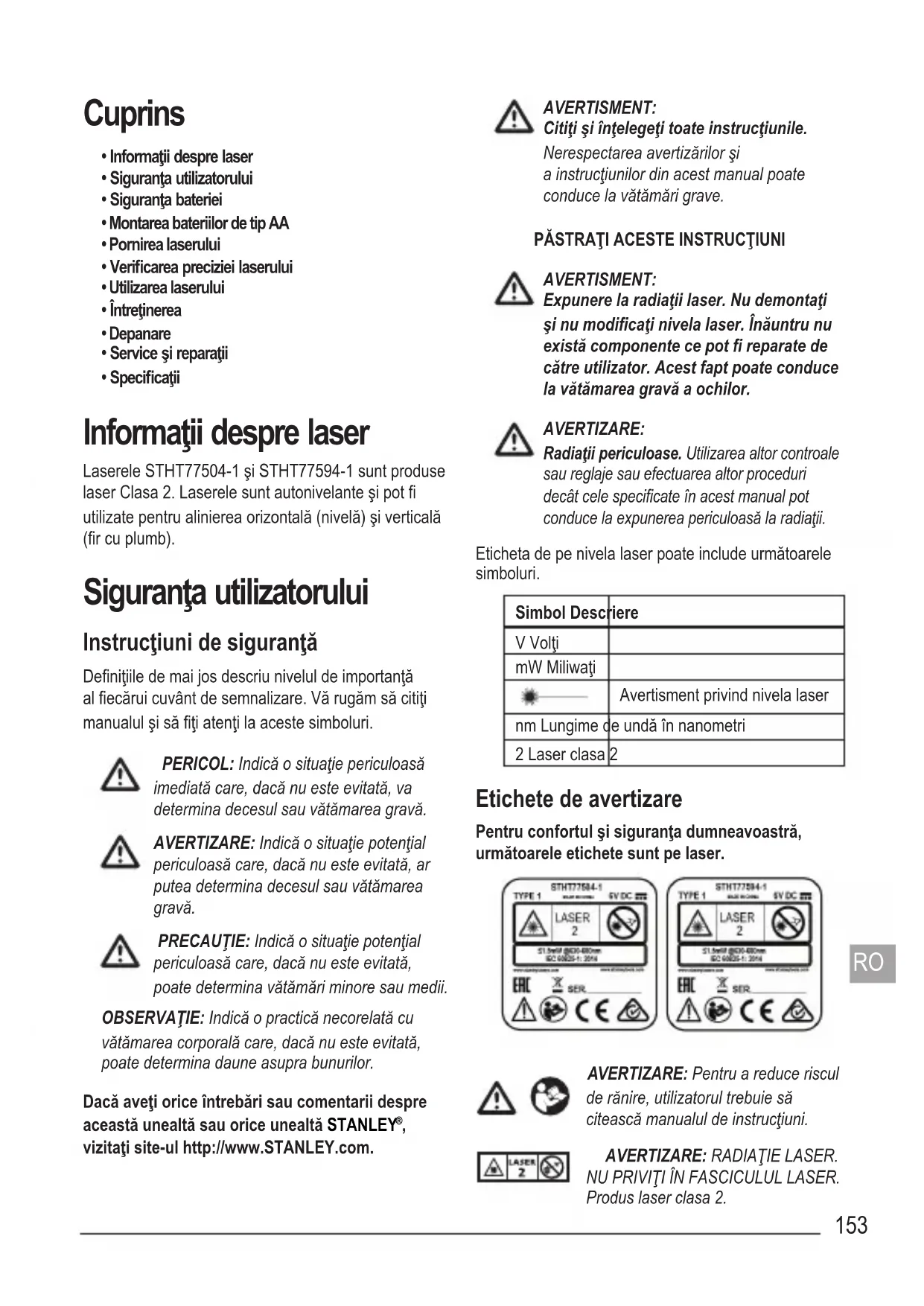 MANUAL DE UTILIZARE SLL360 STANLEY