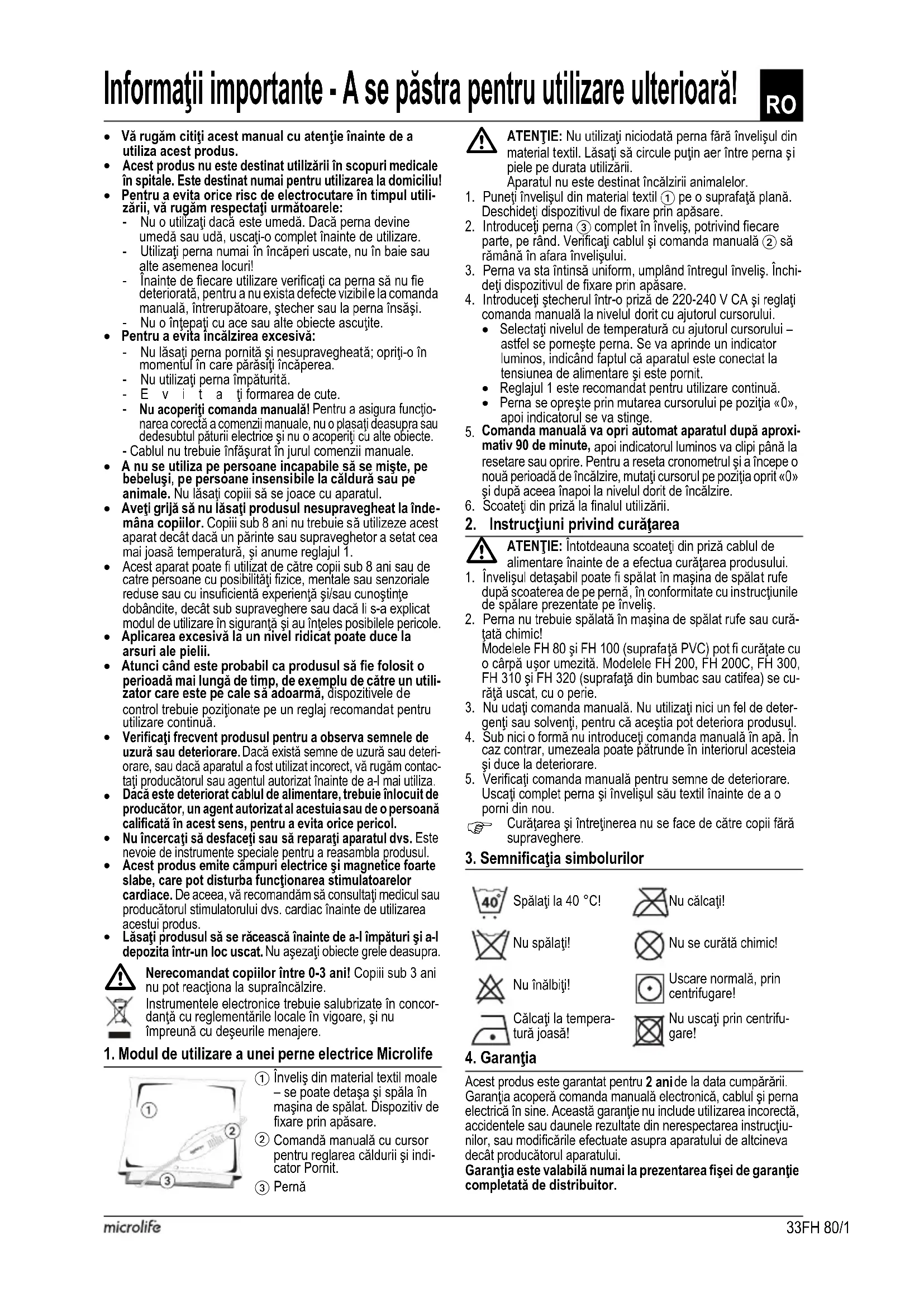 FH 100 - Pătură/pernă încălzită MICROLIFE - Manual de utilizare gratuit