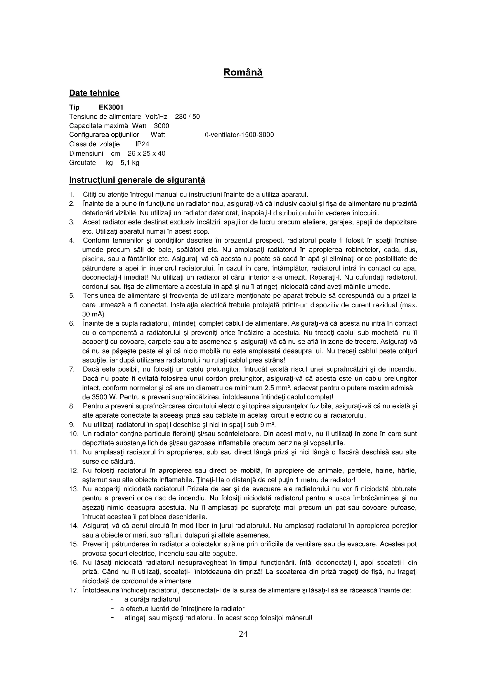 - Utilizați radiatorul numai în scopul în care a fost proiectat și conform instrucțiunilor din prezentul manual. Nerespectarea instrucțiunilor 23, 24 și 25 poate provoca daune, incendii și/sau rănirea persoanelor. Conduce la pierderea imediată a garanței, iar vânzătorul, importatorul și/sau producătorul nu își asumă răspunderea pentru nicio consecință!